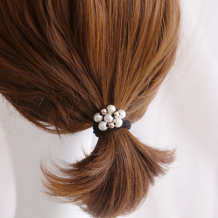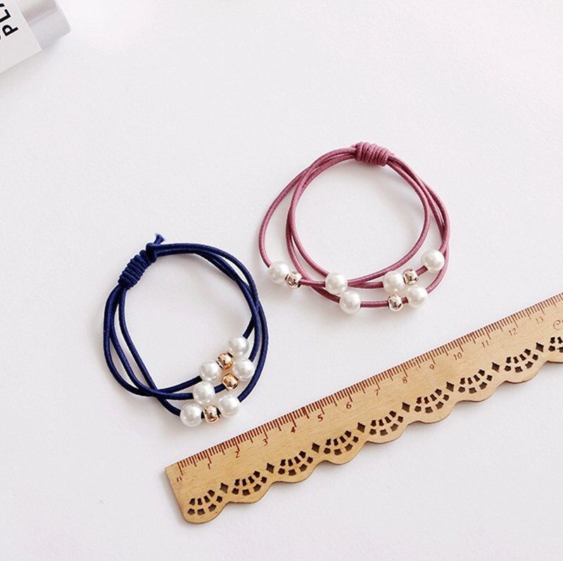 Estilo coreano nueve cuentas de Alta cubierta de cuero elástica simple perla con cuentas de tres en uno cuerda de pelo de las mujeres frescas banda de lazo de pelo banda de goma