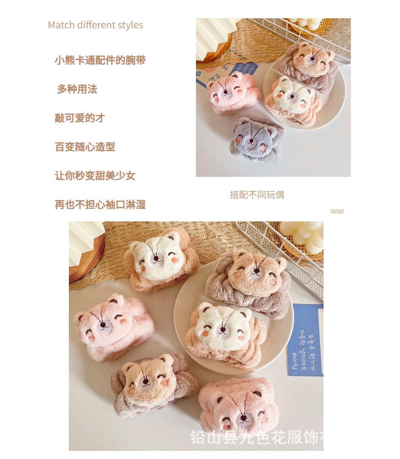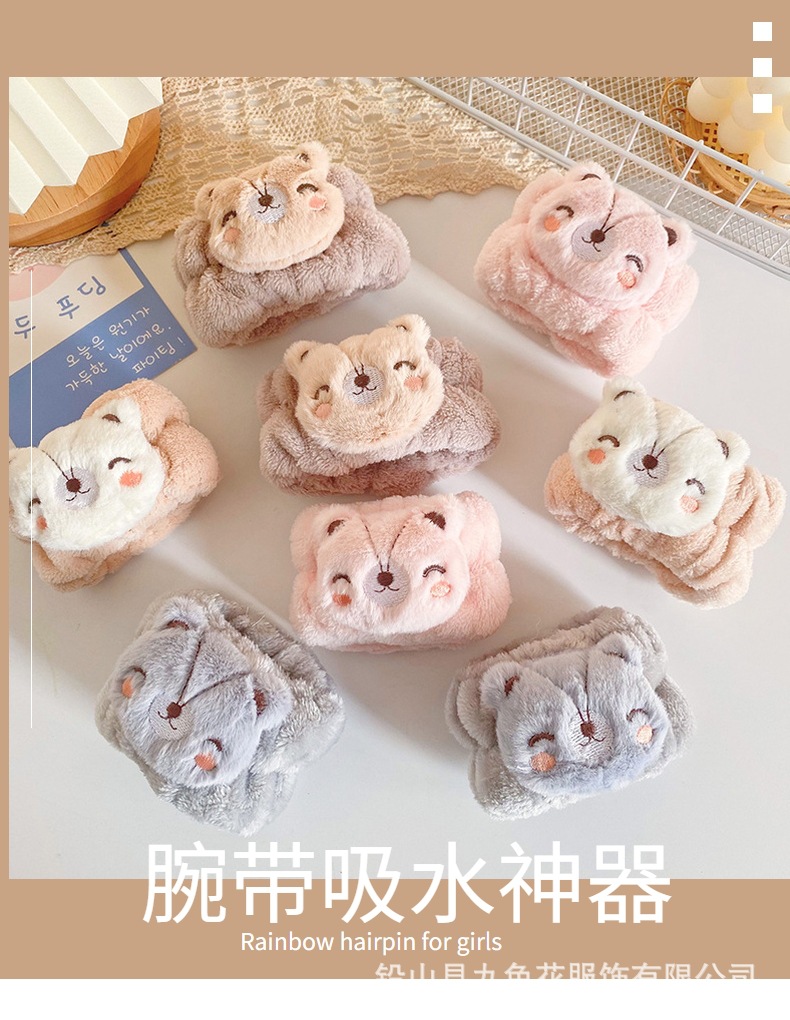 Gato de dibujos animados lavado de cara correa de muñeca chica lavado de manos prevenir brazalete húmedo pulsera absorbente muñeca linda banda de pelo