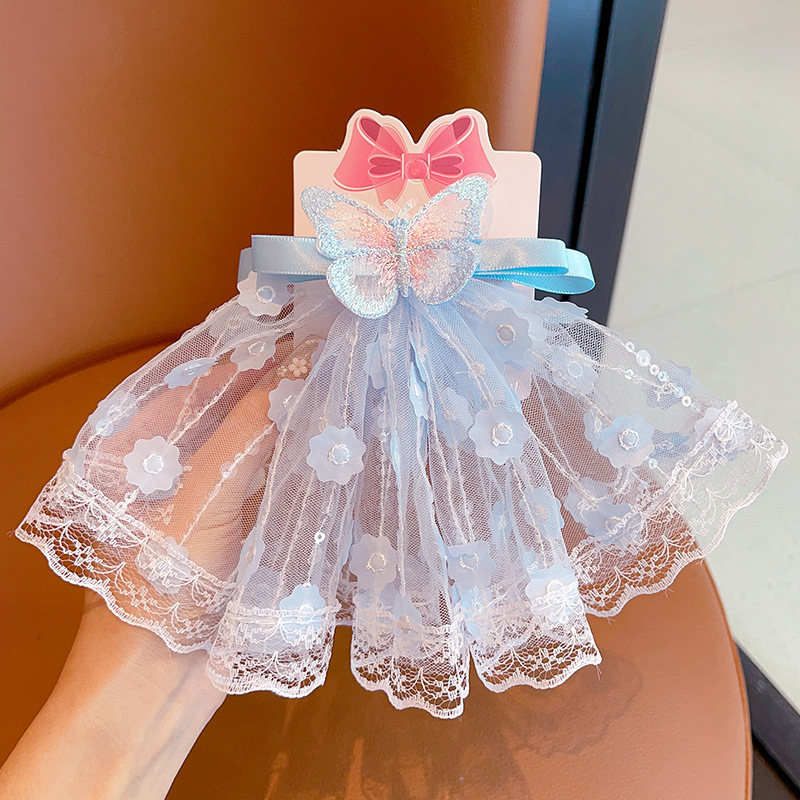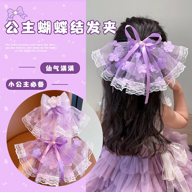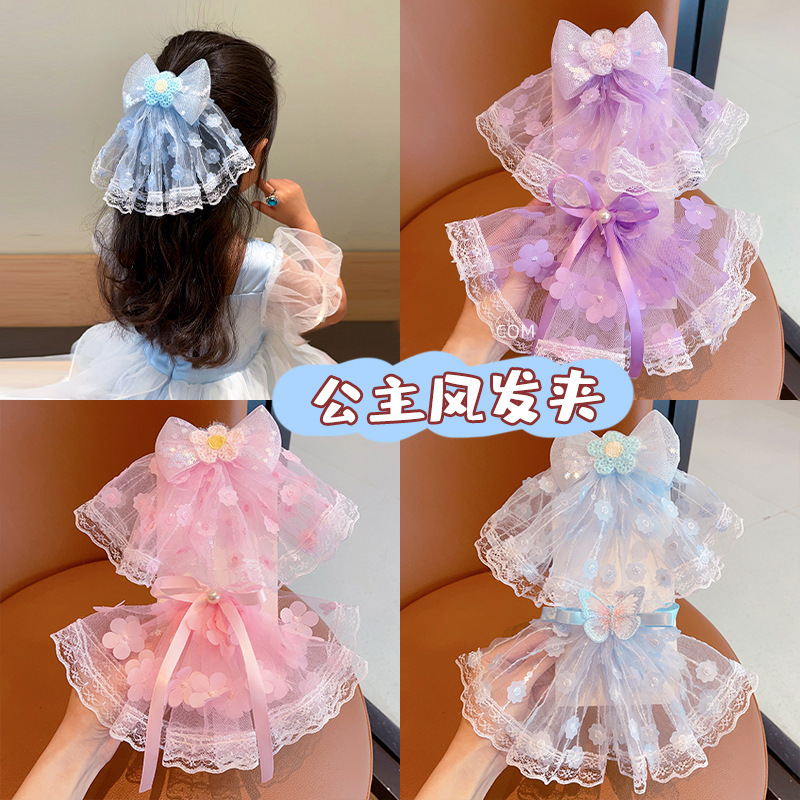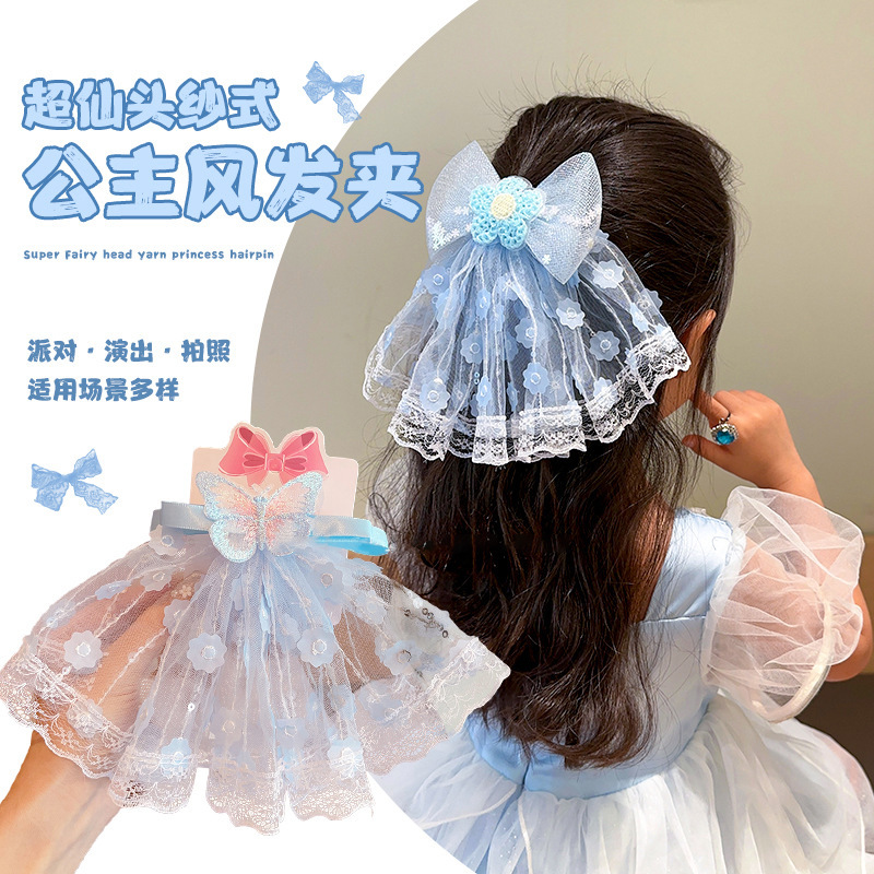 2024 nueva horquilla para niños, cinta de encaje de súper hada, horquilla de lazo, clip superior de temperamento de niña, tocado de niña