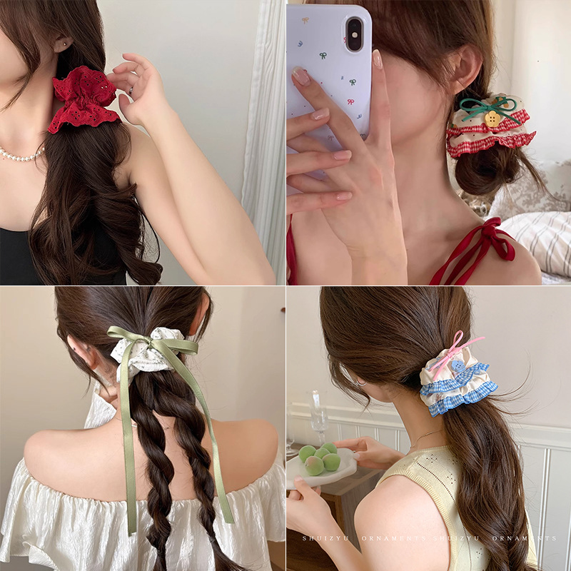 Coreano de encaje suave anillo de cabello de intestino feminilidad baja cola de caballo cuerda de cabello de primavera de otoño elegante atar cabello cuerda de cabeza de intestino grasa