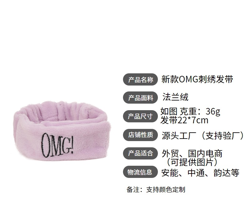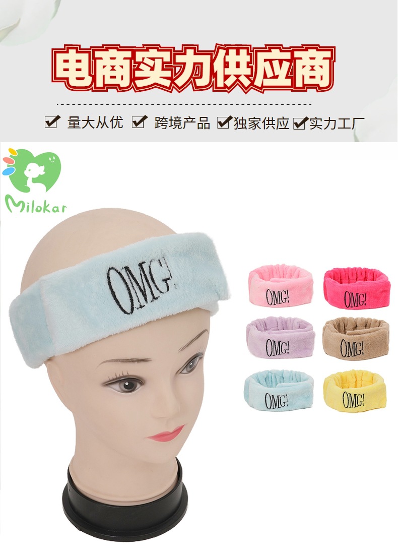 Europa y los Estados Unidos nuevos velcro turbante OMG letras bordadas correa de cabello para mujeres lavar la cara SPA banda de cabello ancho borde peluche adornamiento para el cabello