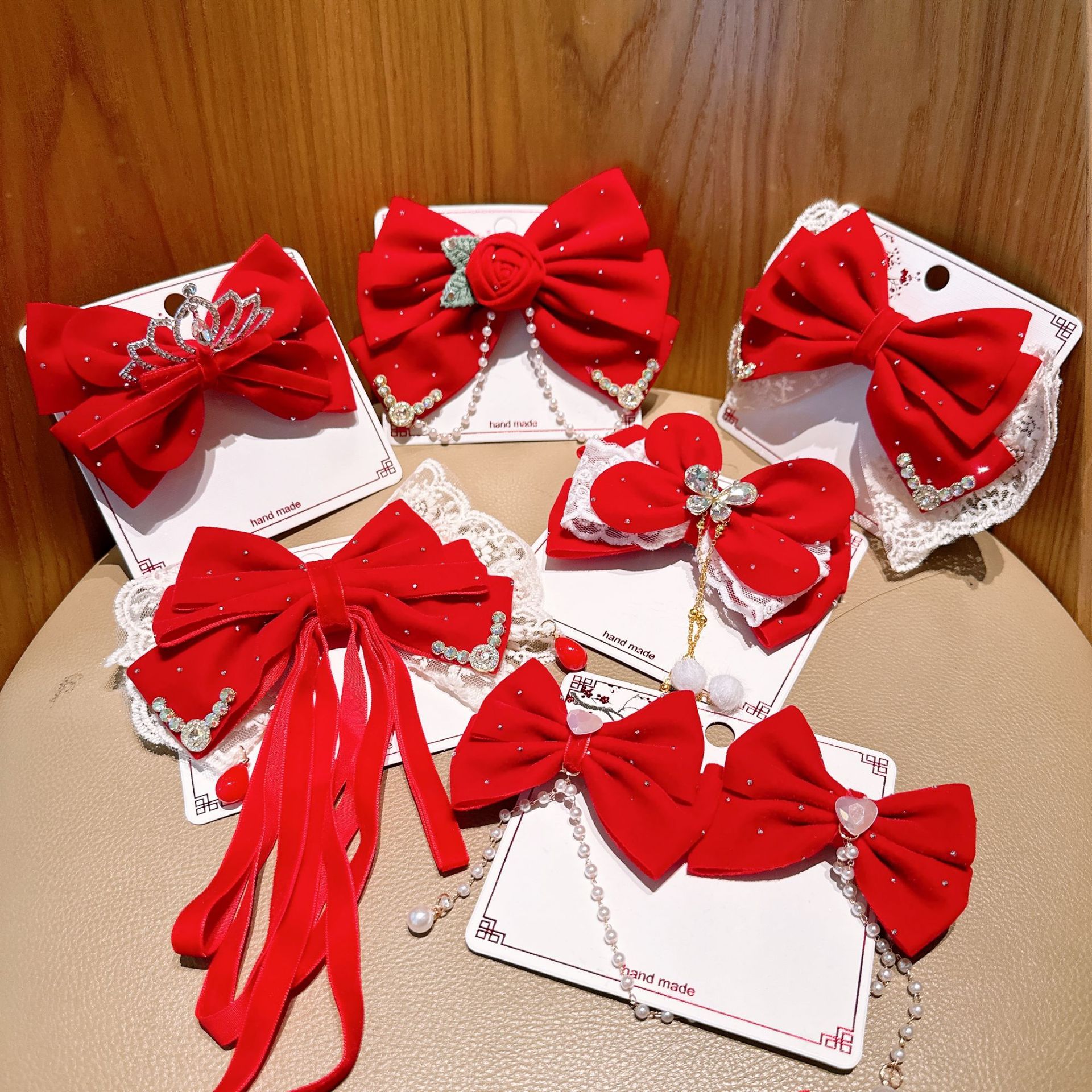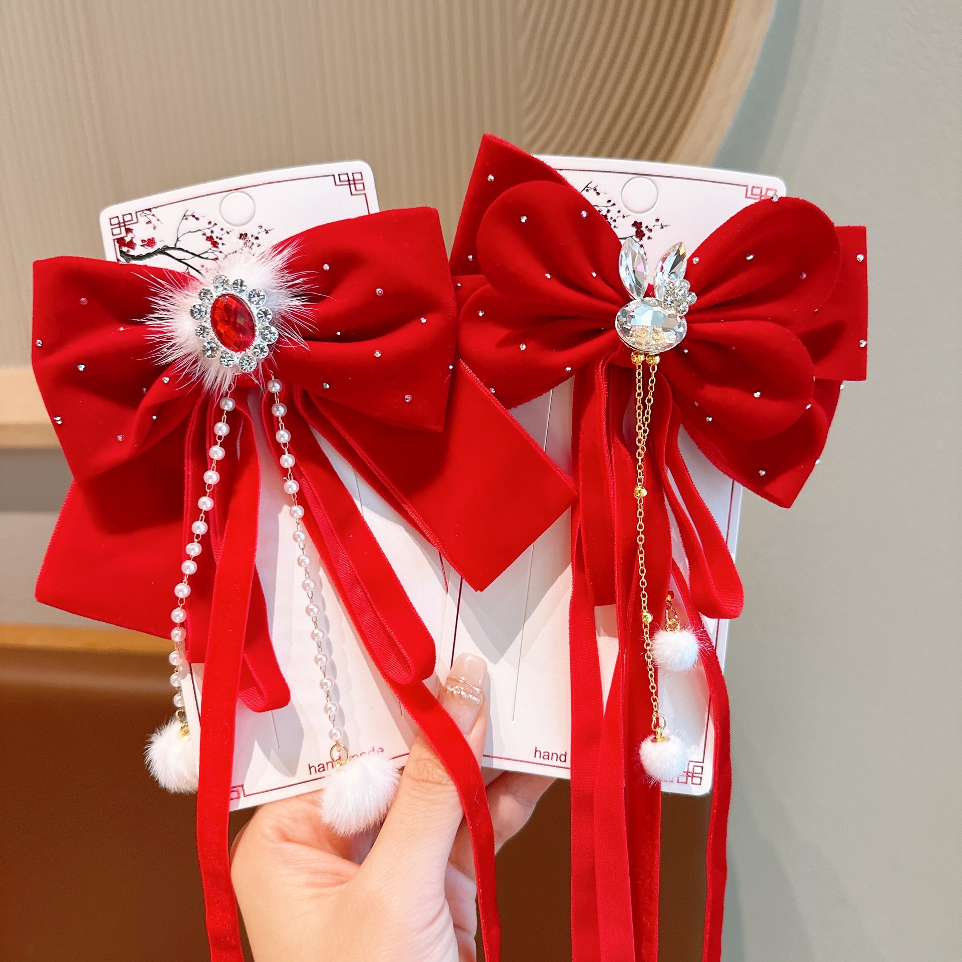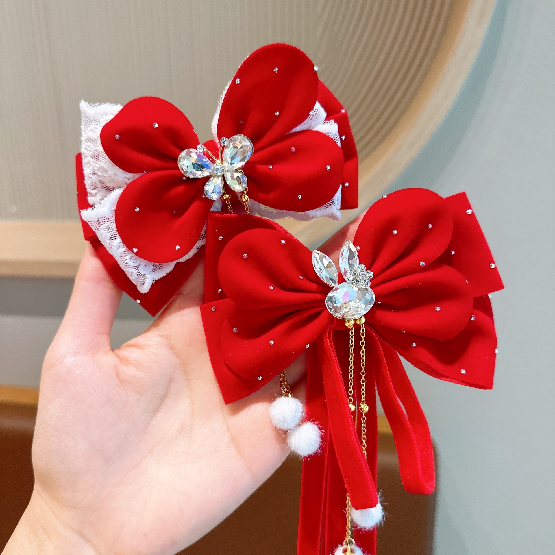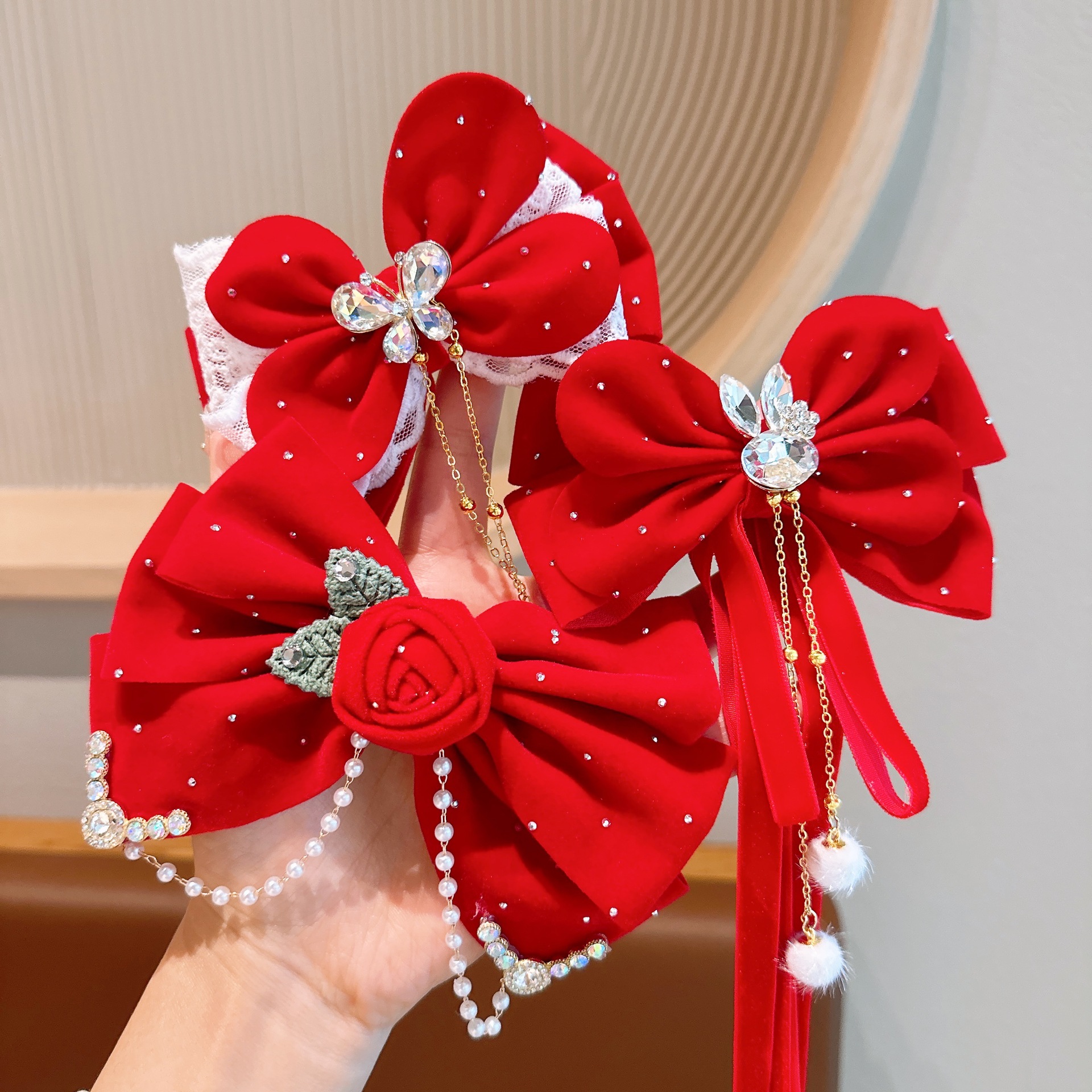 2025 Año Nuevo niños clip de boca de pato rojo correa de viento chino tarjeta de cabello para niñas adornamientos de cabello de Año Nuevo clip de cabello de arco