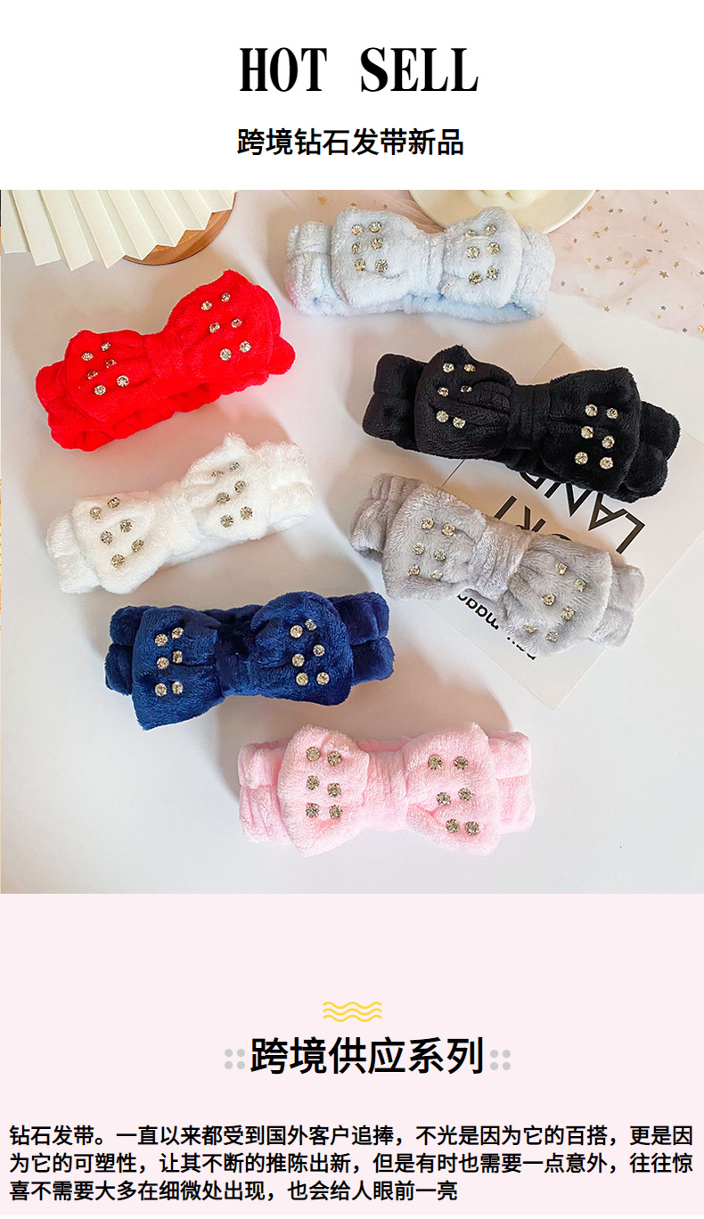 Europea y americana transfronteriza nuevo diamante arco diadema femenina SPA cara lavado diadema color sólido felpa accesorios para el cabello al por mayor