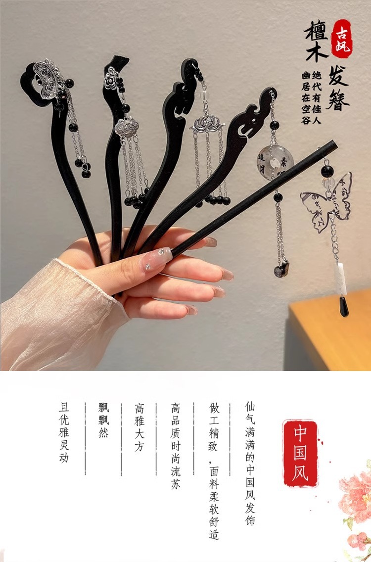 Pinzas de cabello de madera para mujeres nuevos pinzas de estilo chino de alto nivel diarios vestido de caballo de viaje antiguo sándalo bandeja de cabello pinzas de cabello tocado