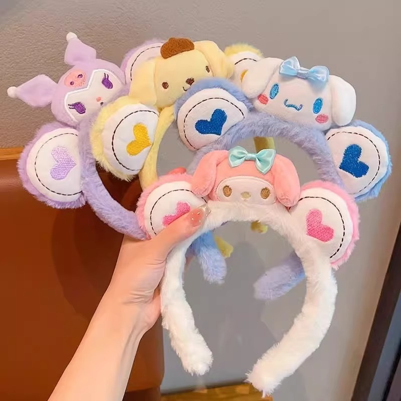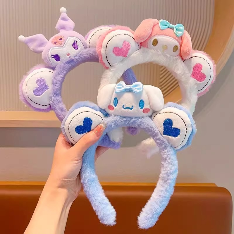 Nuevo otoño y invierno peludo aro de pelo dibujos animados Sanliogou cabeza aro de pelo especial para lavar la cara maquillaje pelo de pelo correa de pelo adornamiento