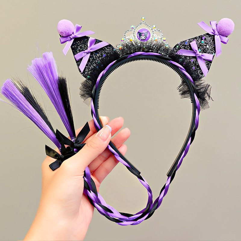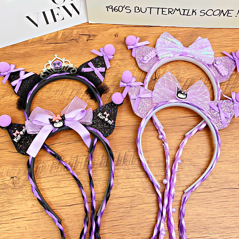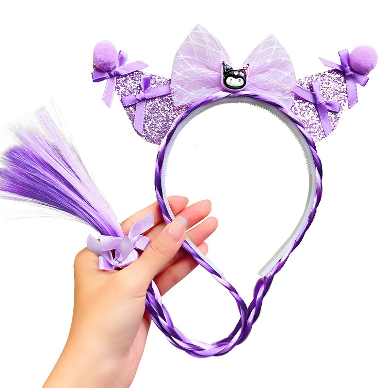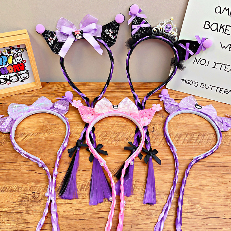 Niñas niñas lindas pelucas Sanrio trenzas prensas de cabello bandos de cabello princesa adornos de cabello de dibujos animados Koolomi arco de cabello bandos