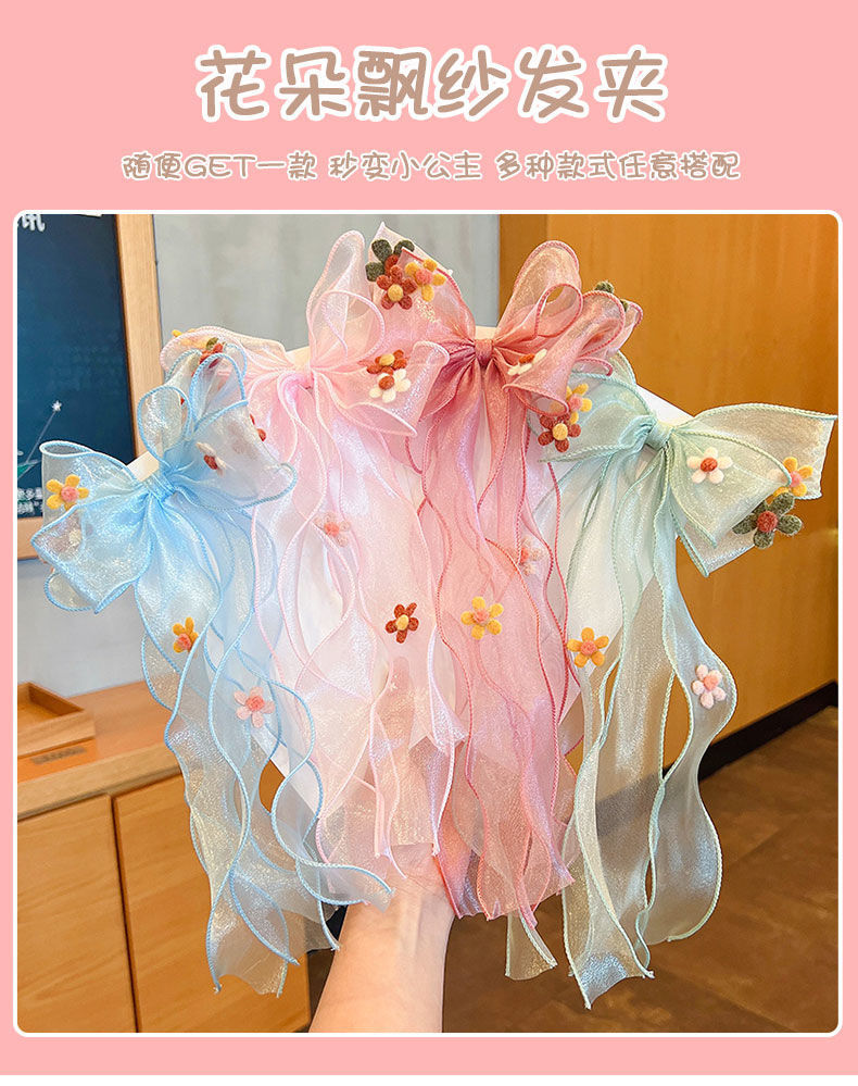 Arco de los niños cinta de malla horquilla 2023 hanfu clip de ropa de las niñas de hadas clip de accesorios para el cabello al por mayor