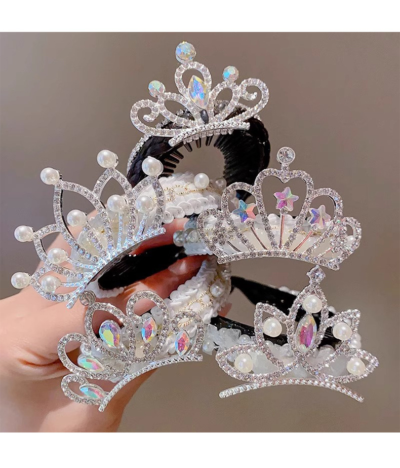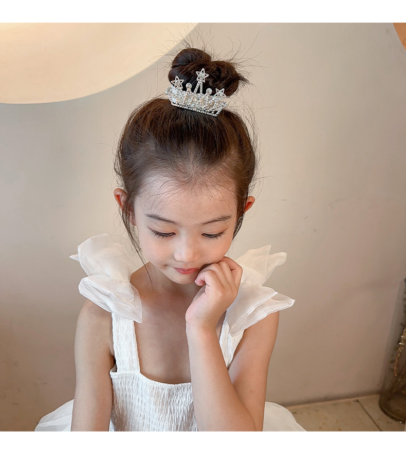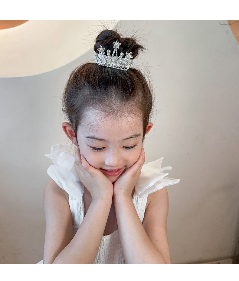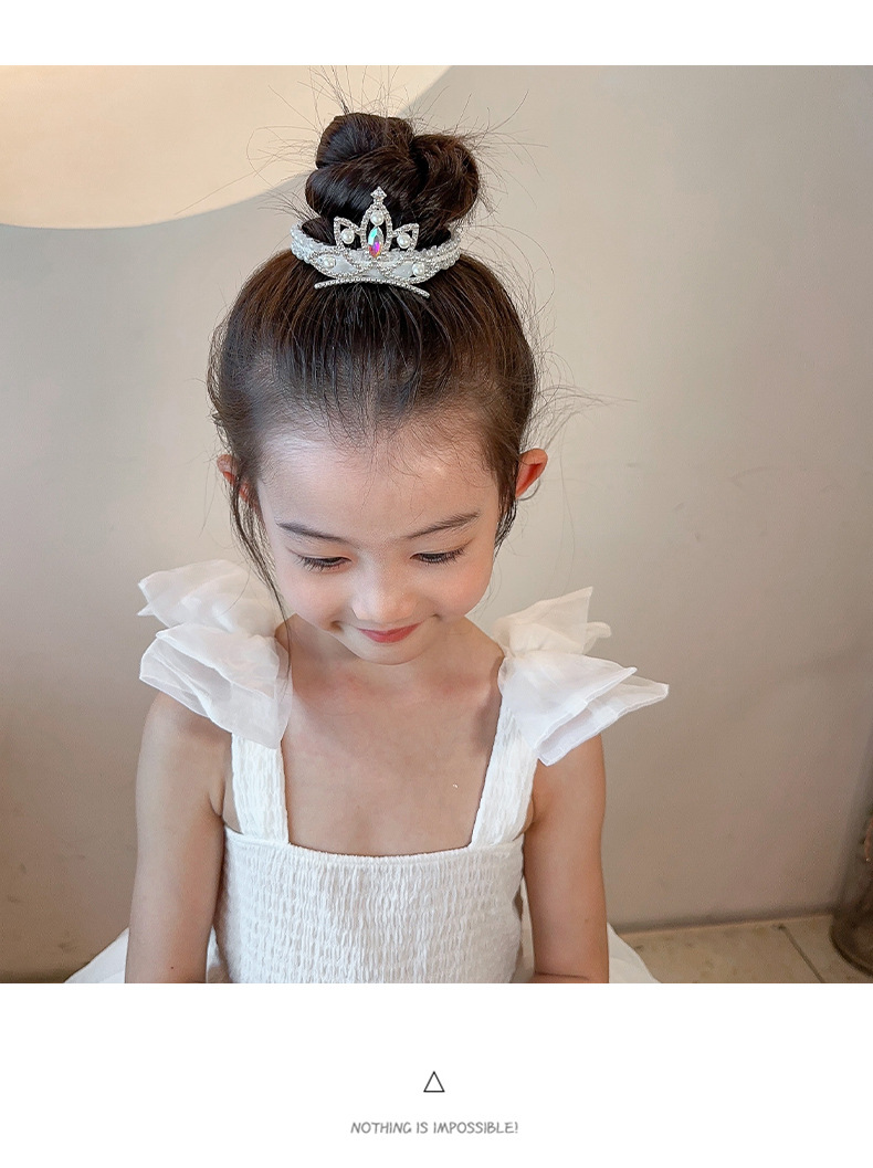 Princesa pequeño tocado de corona rendimiento infantil corona de alta gama hebilla de pelo de bola de alta gama artefacto para el cabello accesorios para el cabello para niñas