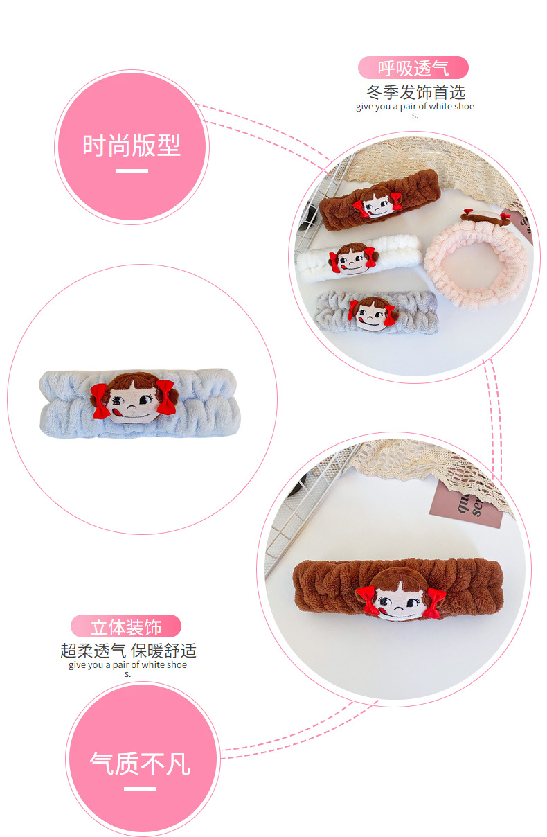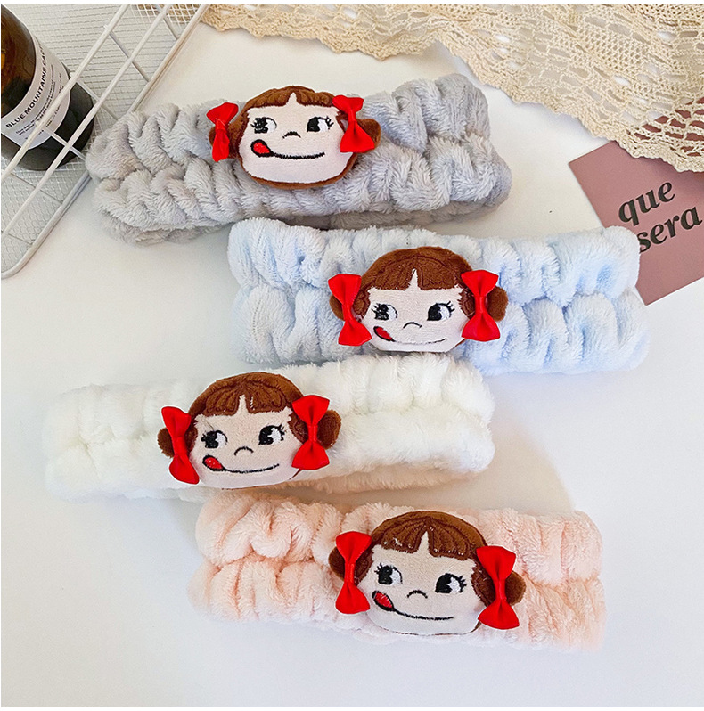 Coreano de dibujos animados niña felpa muñeca pelo banda cara lavado diadema coral terciopelo lindo diadema fábrica suministro directo accesorios para el cabello