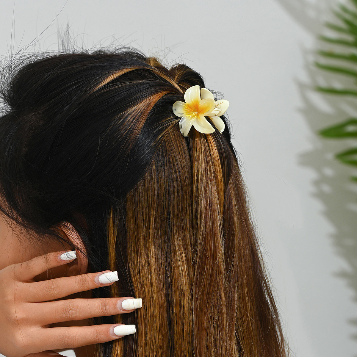 Galvanizado oro y plata huevo flor flor abrazadera de cabello color mediano agarrar abrazadera de cabello medio agarrar abrazadera de cabello de plástico 4cm
