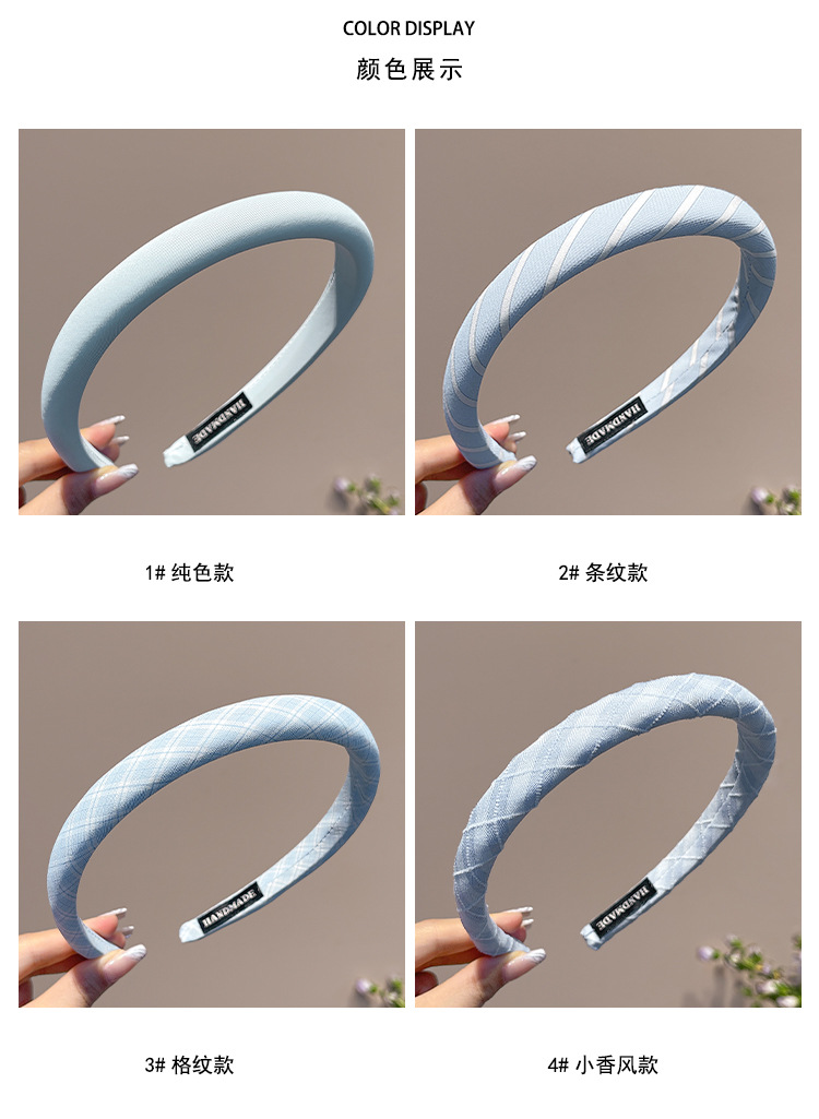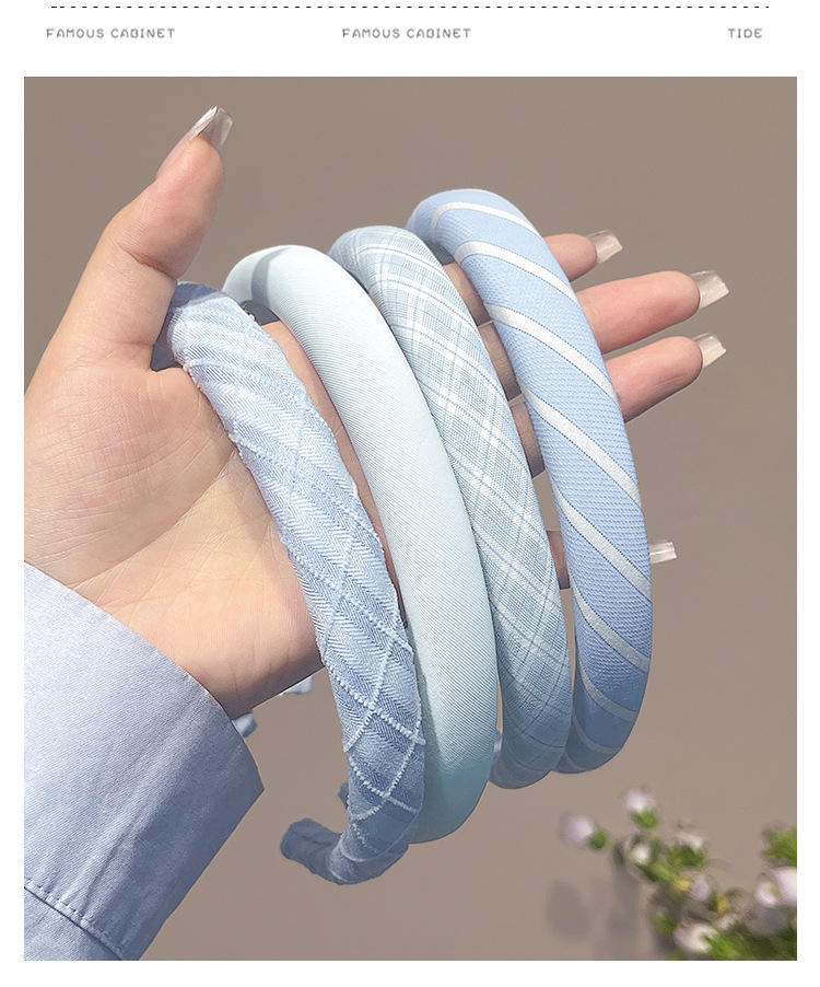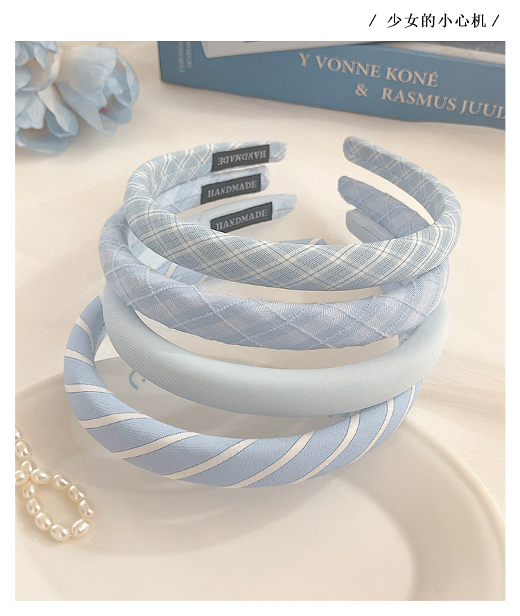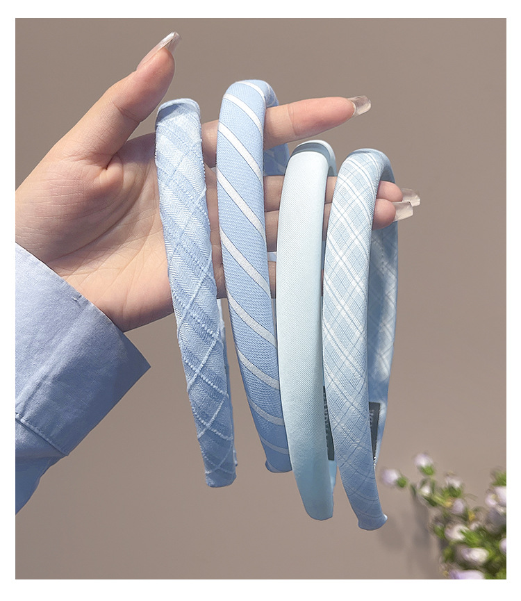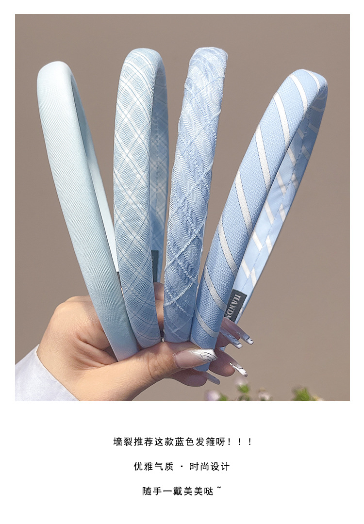 Pequeño aro de cabello azul fresco para mujeres primavera y verano estilo de cabello temperamento lavado de cara aro de cabello alto cráneo antideslizante presión tarjeta de cabello