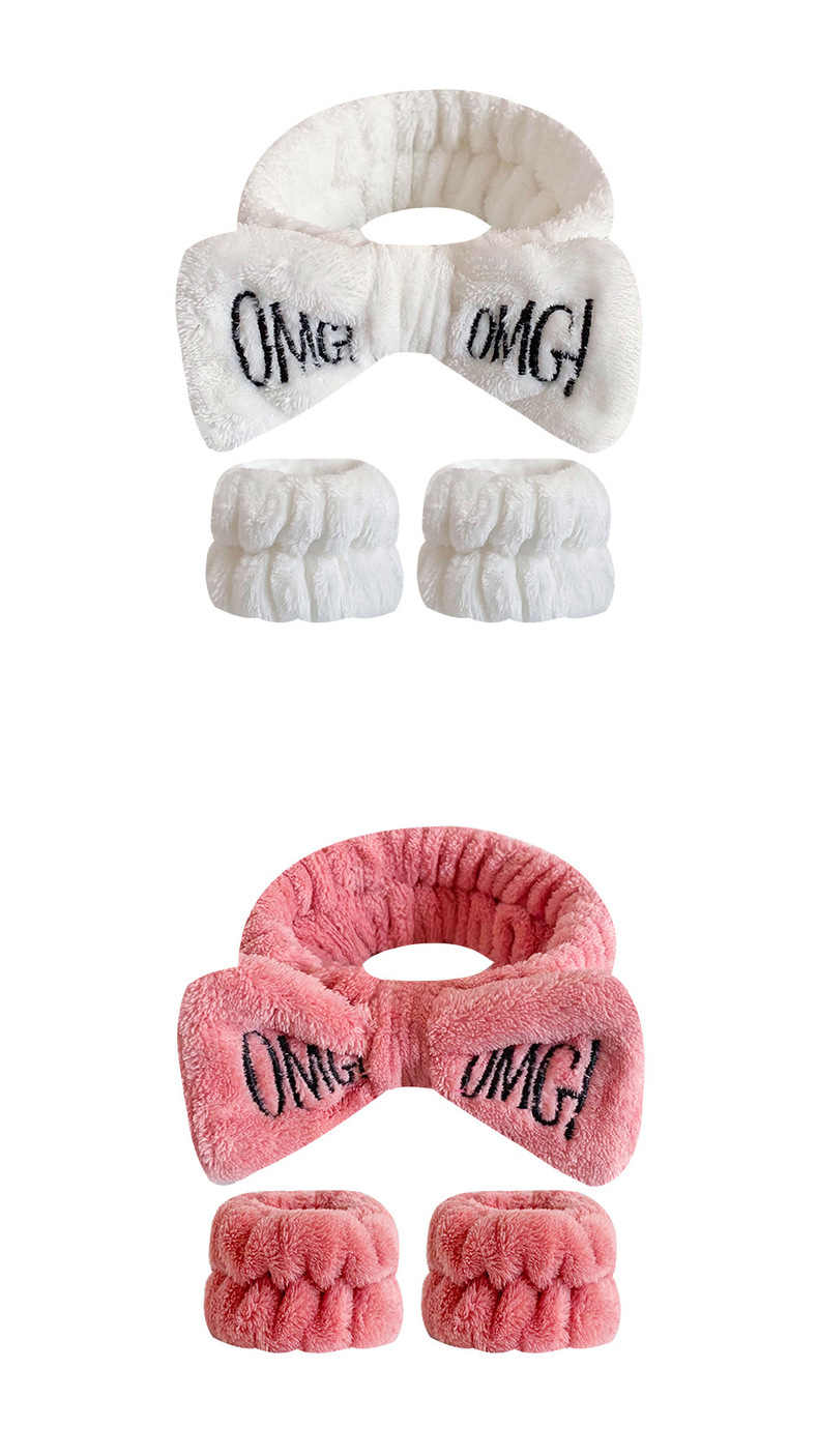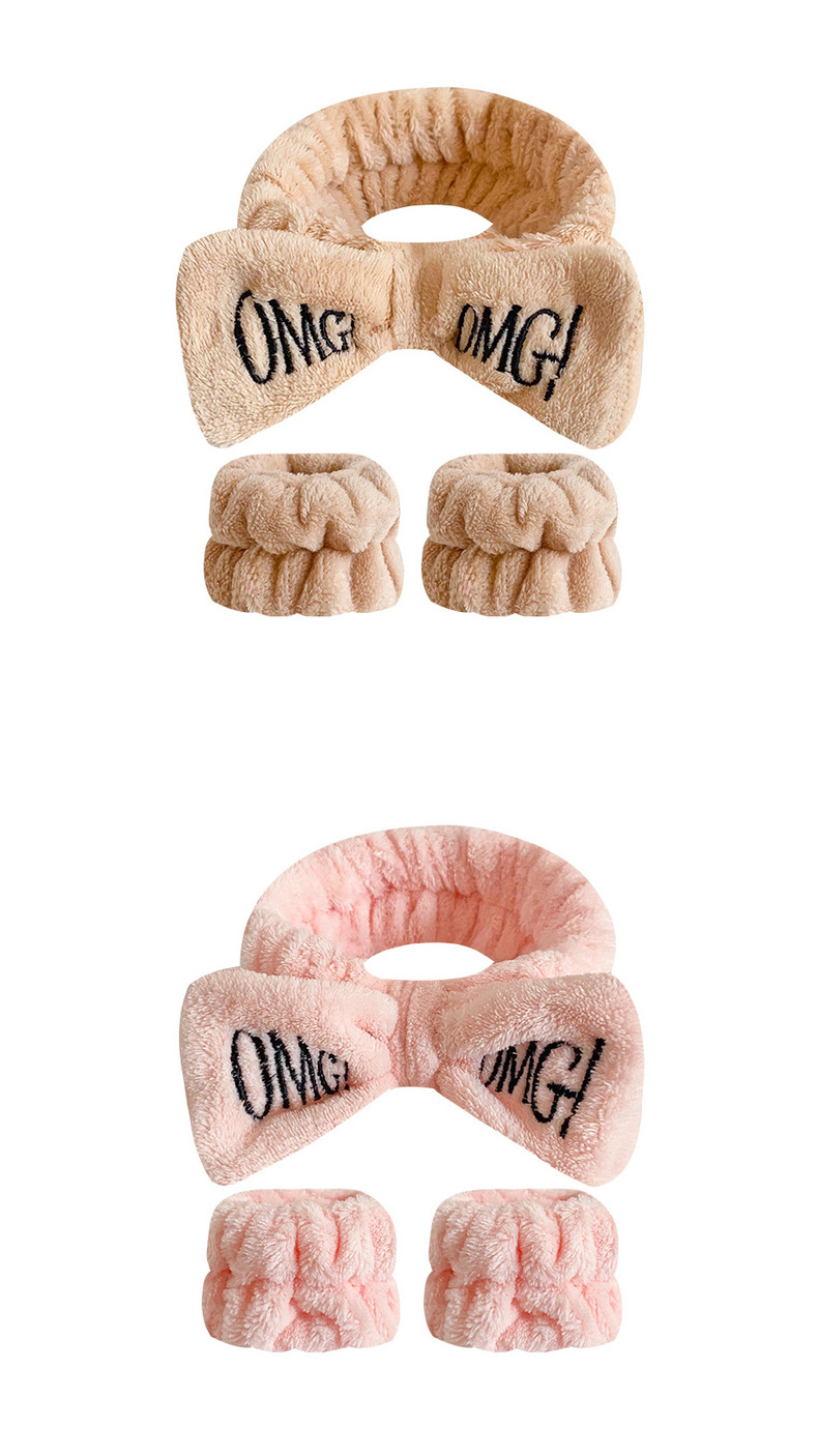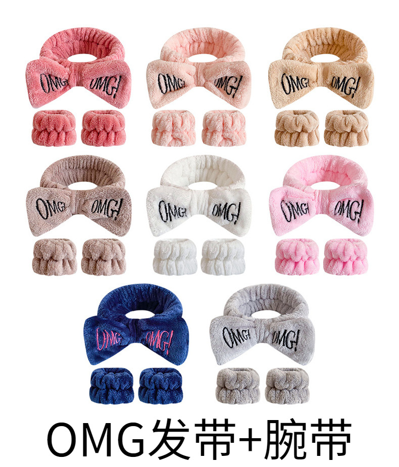 Amazon transfronteriza OMG arco banda de pelo correa de muñeca traje de las mujeres lavado de cara franela diadema pulsera absorbente