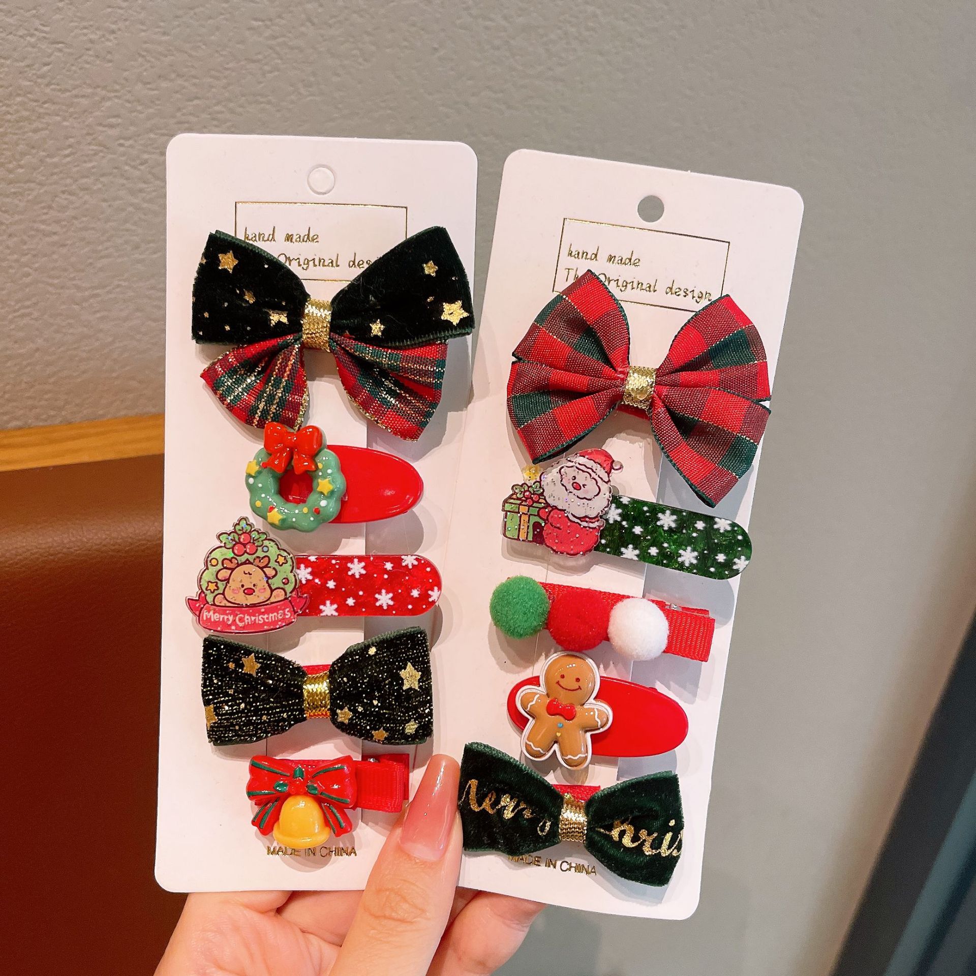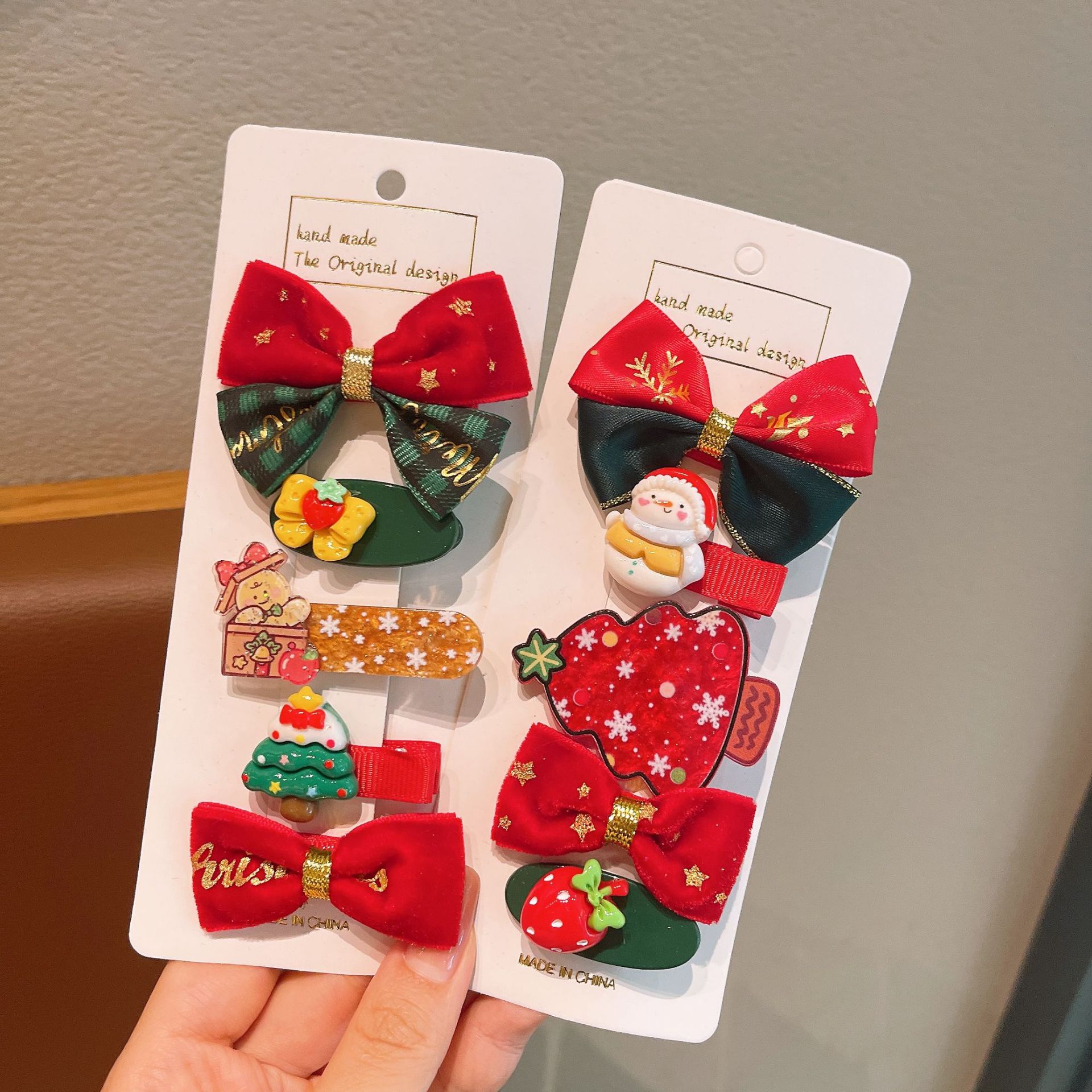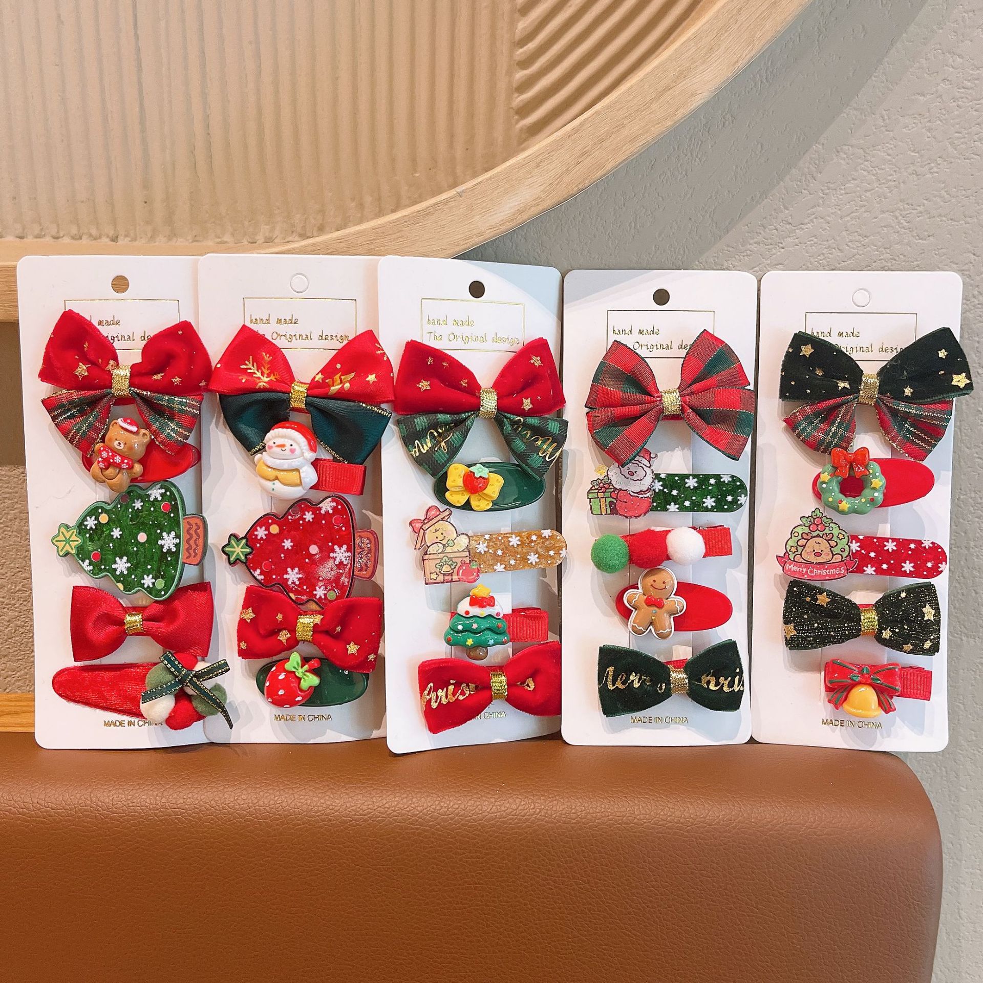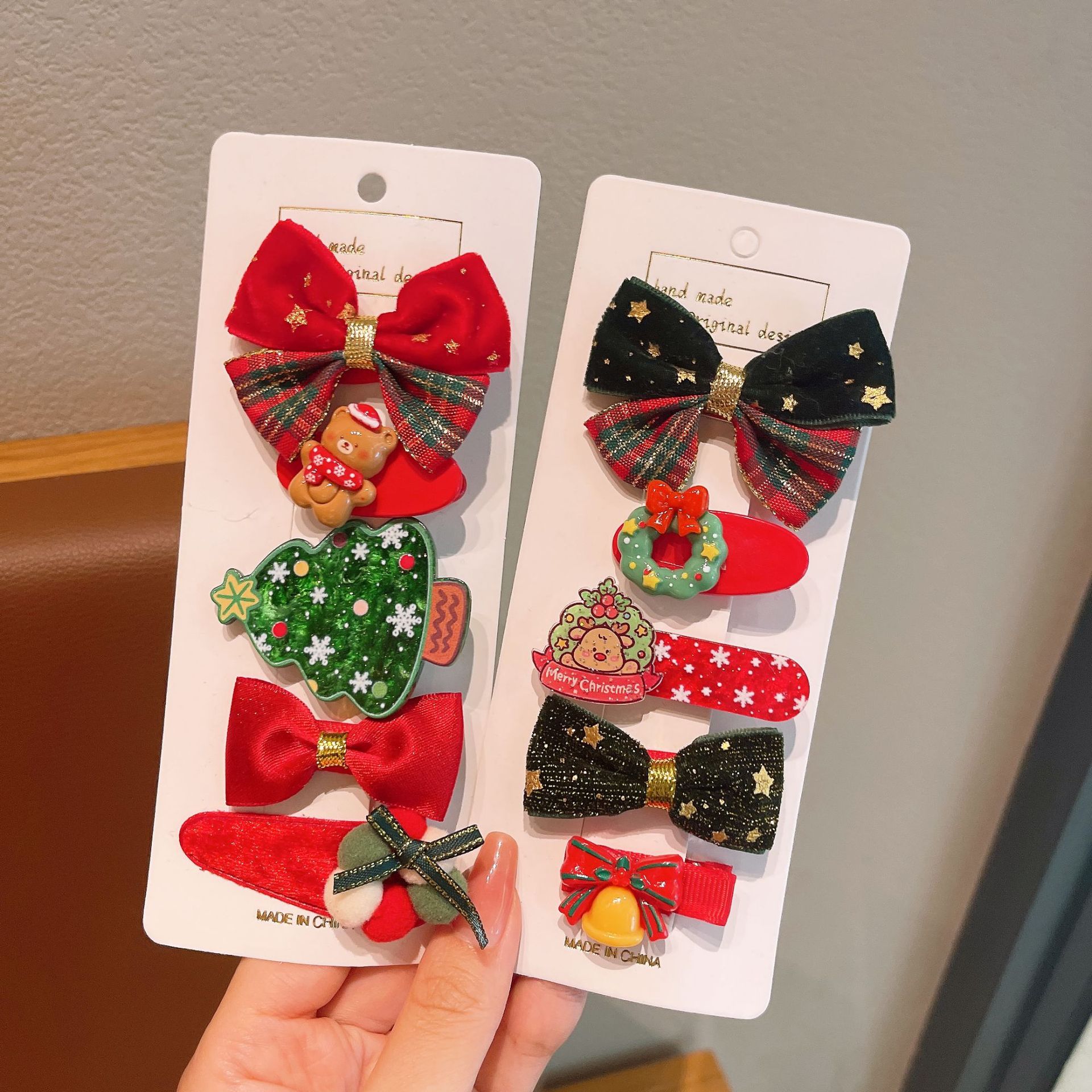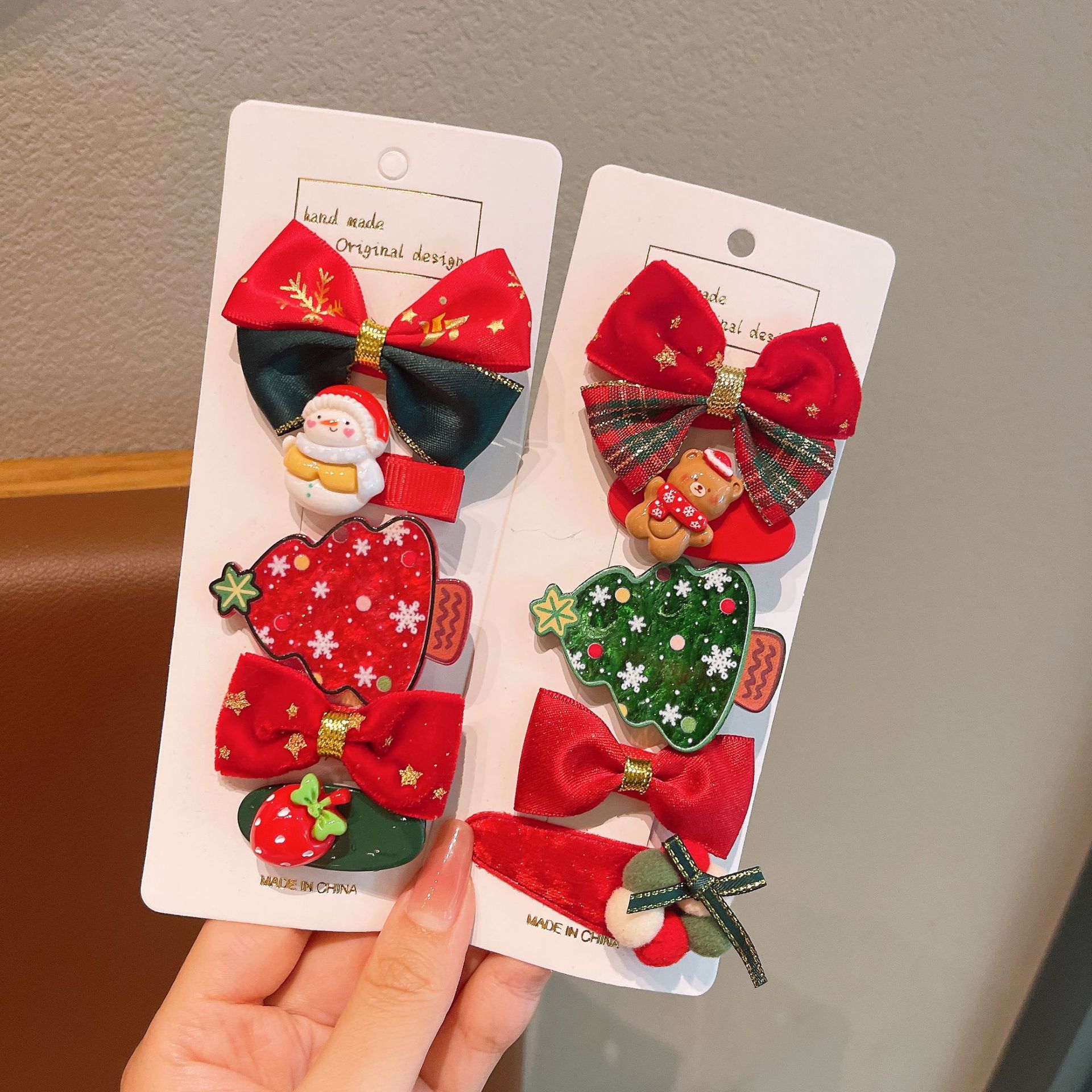 2024 nuevo clip de pelo infantil de Navidad arco rojo tarjeta de pelo niña muñeco de nieve vestido de vacaciones decoración de pelo