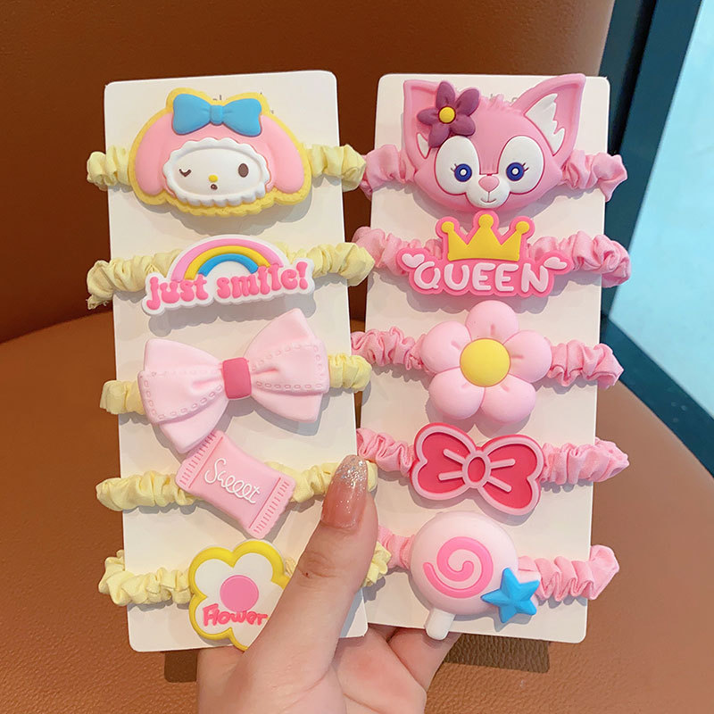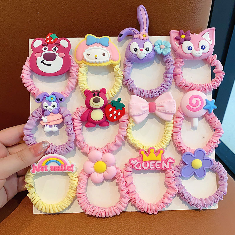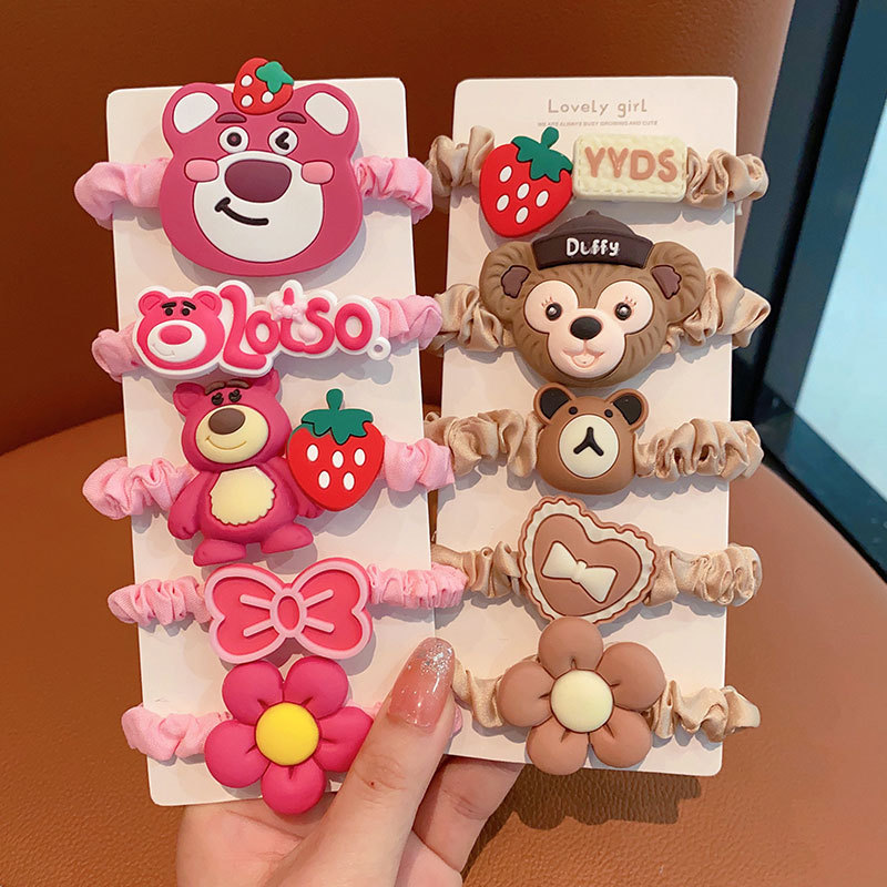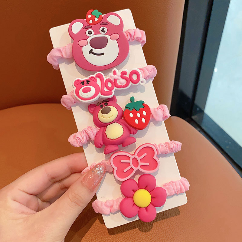 Los niños lindo fresa oso estrella delu banda para el cabello niña lazo para el cabello banda de goma no hace daño lazo para el cabello cola de caballo cuerda para el cabello al por mayor