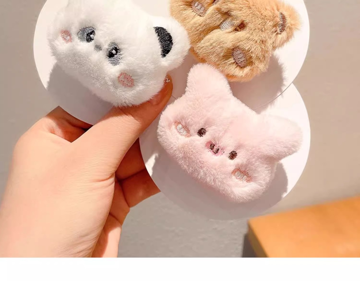 | Colores | Broche de peluche de patito amarillo.,Broche de peluche de oso blanco.,Broche de peluche Ka Bear.,Broche de peluche de cerdo rosa.,Broche de peluche de conejo blanco.,Broche de felpa de rana. |