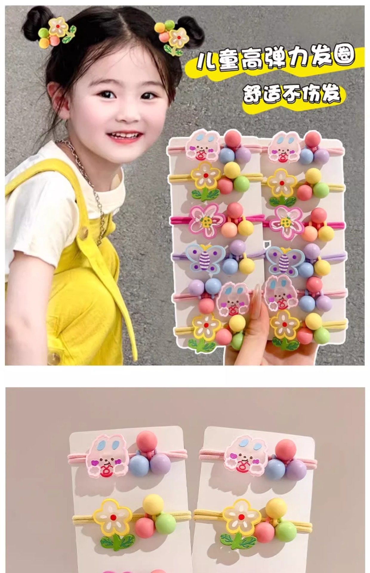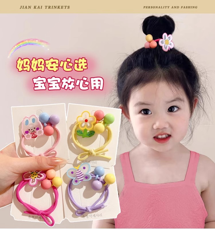 Color no daña anillo para el cabello de la niña atada bola cabeza cinta elástica lindos dibujos animados conejo flor cabeza adornos para el cabello