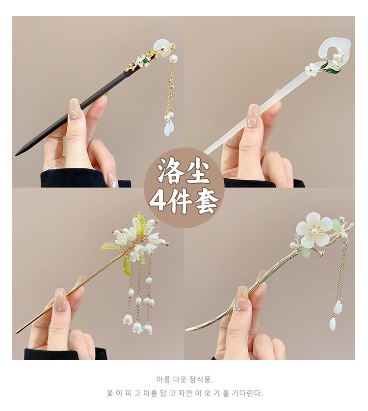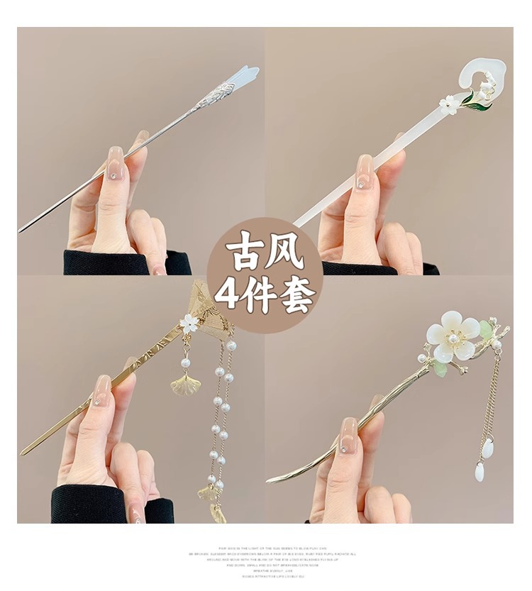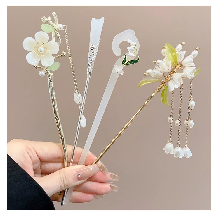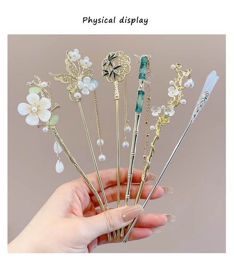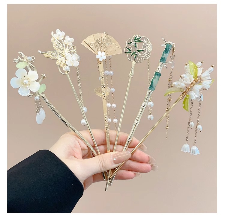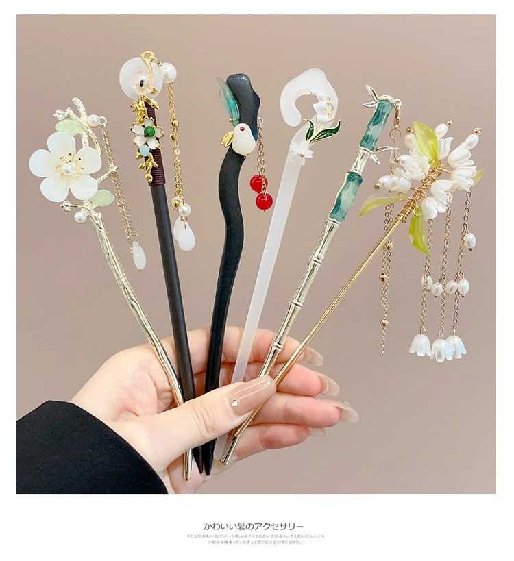 | Colores | Nubes auspiciosas.,La cabeza del fénix.,Campanas de viento.,Luna en el mundo.,Flor doble de color Yu.,El lirio de los valles.,Caqui.,Flor de campana.,Yunge Yushui.,Yunge Qingshui.,Lluvia brumosa.,Lirio de los valles jade blanco.,Lirio de los valles agua clara.,Conejo de lluvia brumosa.,Flor de jade blanco.,Conejo de jade flor blanca.,Doble flor rosa.,Flor de concha.,Vela de jade blanco.,La linterna del palacio es dorada.,Hoja de albaricoque.,Horquilla de capullo de flor de color Yu.,Ventilador plegable.,Doble flor azul.,Conejo de jade blanco.,Lago de bambú azul.,Las borlas del lirio de los valles.,Bambú de jade blanco.,Conejo rojo.,Flor doble rosa blanca.,Flor de perla.,Tres flores de perlas.,Cielo de jade blanco.,Cielo de jade verde.,Tulipanes dorados.,Ventilador redondo.,El campo de las estrellas mágicas.,Flor de diamantes de imitación.,Horquilla con flecos.,Una guirnalda rosa.,Loto blanco.,Flor doble de jade blanco.,Conejo de jade.,Ciruela rosa.,Ciruela azul.,Horquilla de mariposa de caligrafía.,Bambú.,70 # Mariposa perla flor borla horquilla dorada. |