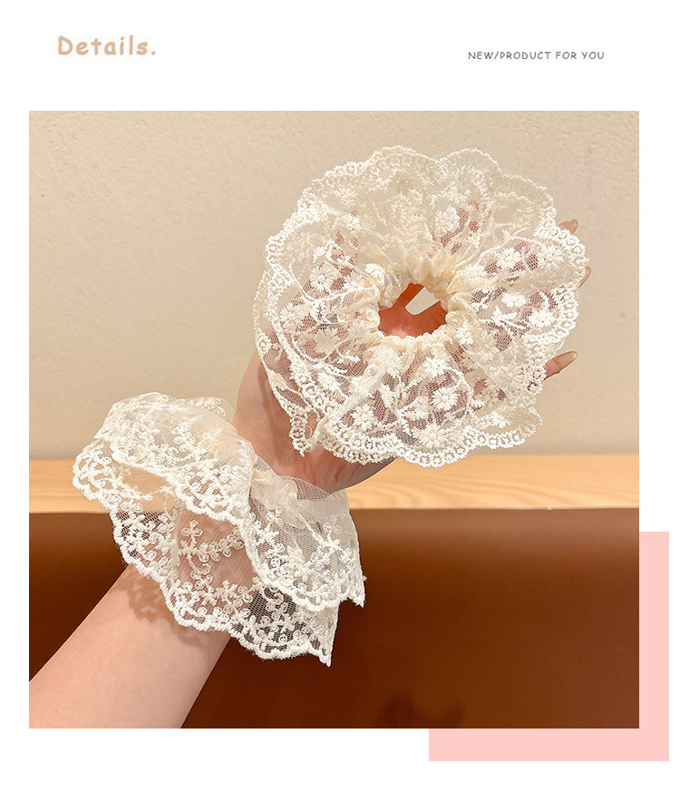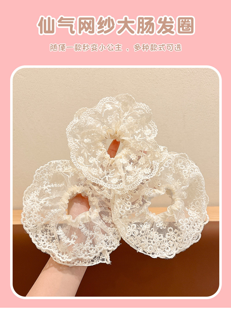 Nuevo estilo coreano super inmortal flores de encaje blanco intestino anillo de cabello dulce tocadillo de cola de caballo para el cabello puro