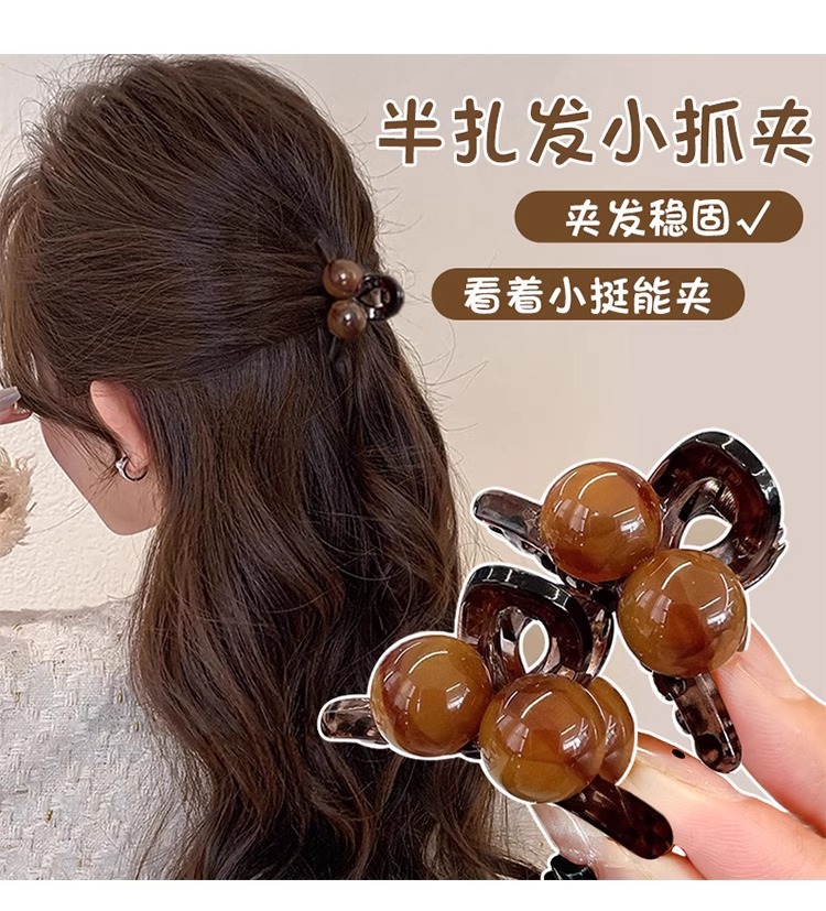 Perla ámbar pequeña clip de agarre para mujeres 2024 nuevo clip de cabello princesa cabeza bang clip de cabello roto clip de tiburón joyería para el cabello
