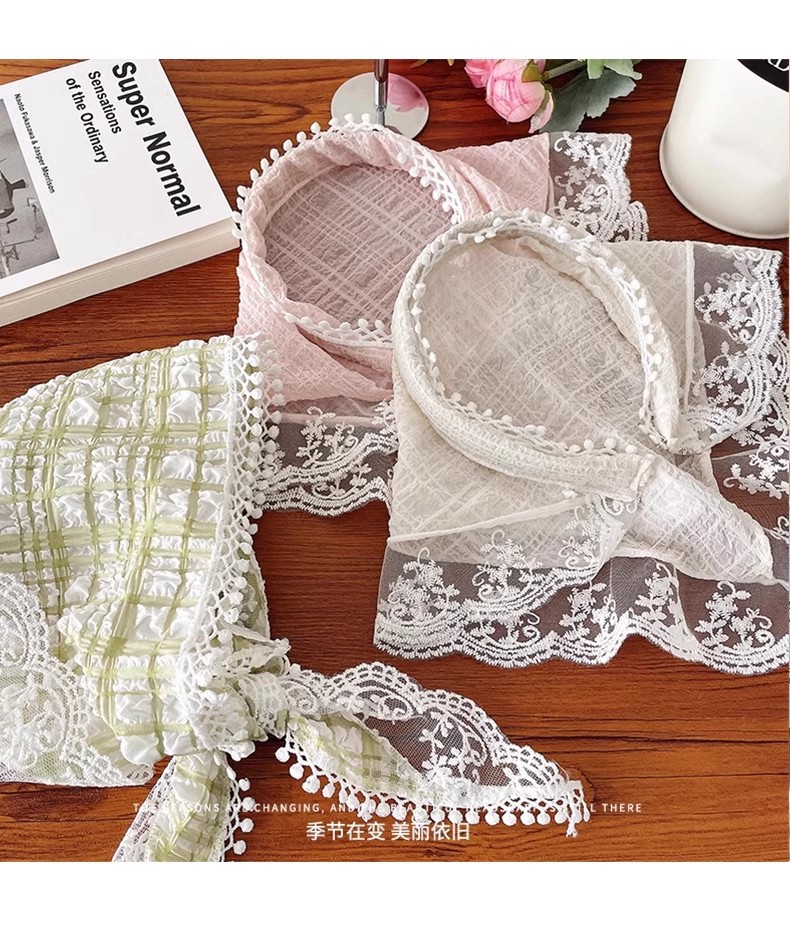 2025 nuevo pañuelo de encaje mujer estilo pastoral buñuelo triangular frente al mar francés de alta calidad toque de pelo