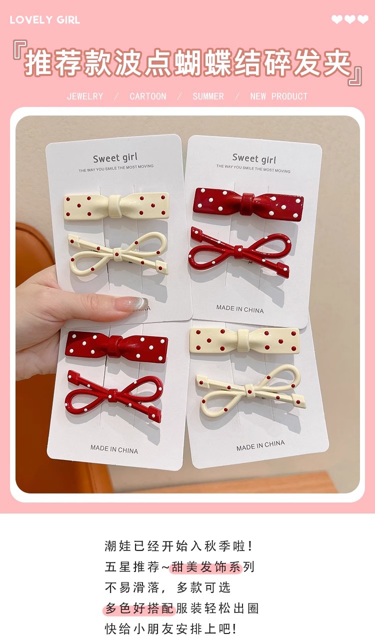 Niños dulces ondas puntos de arco pinzas de cabello 2024 nuevas niñas de estilo universal lindas laterales de cabello roto tarjetas de cabello marinas