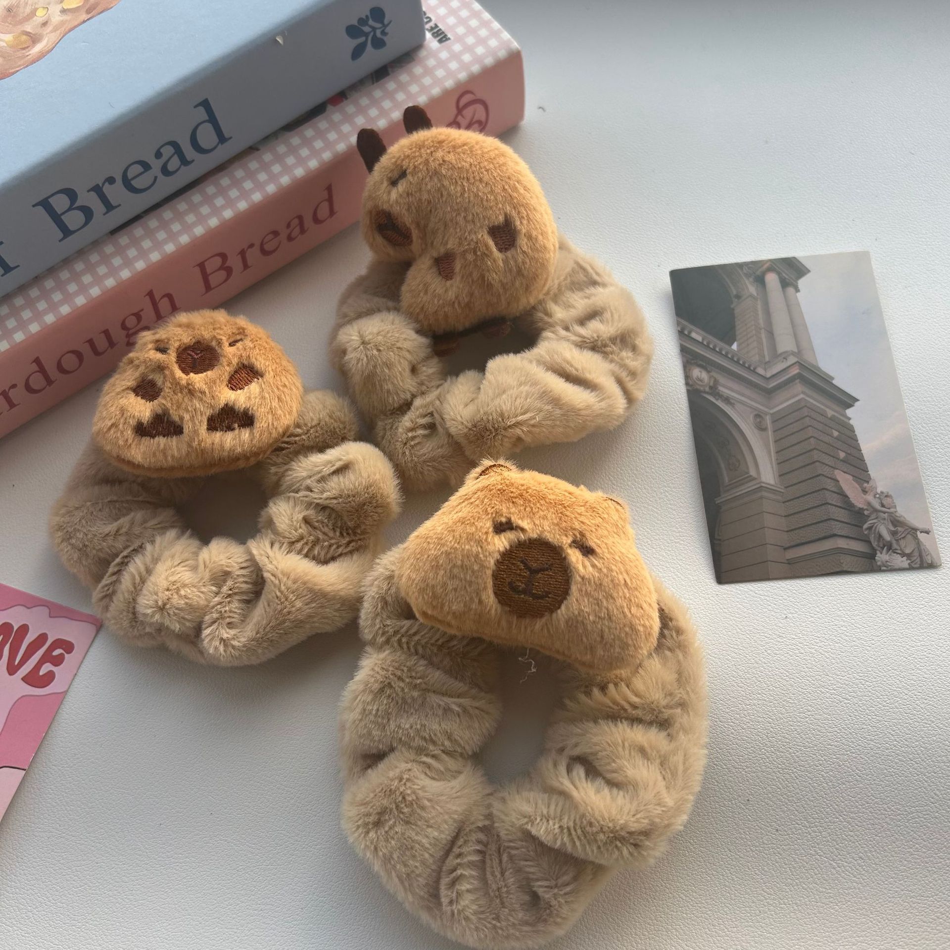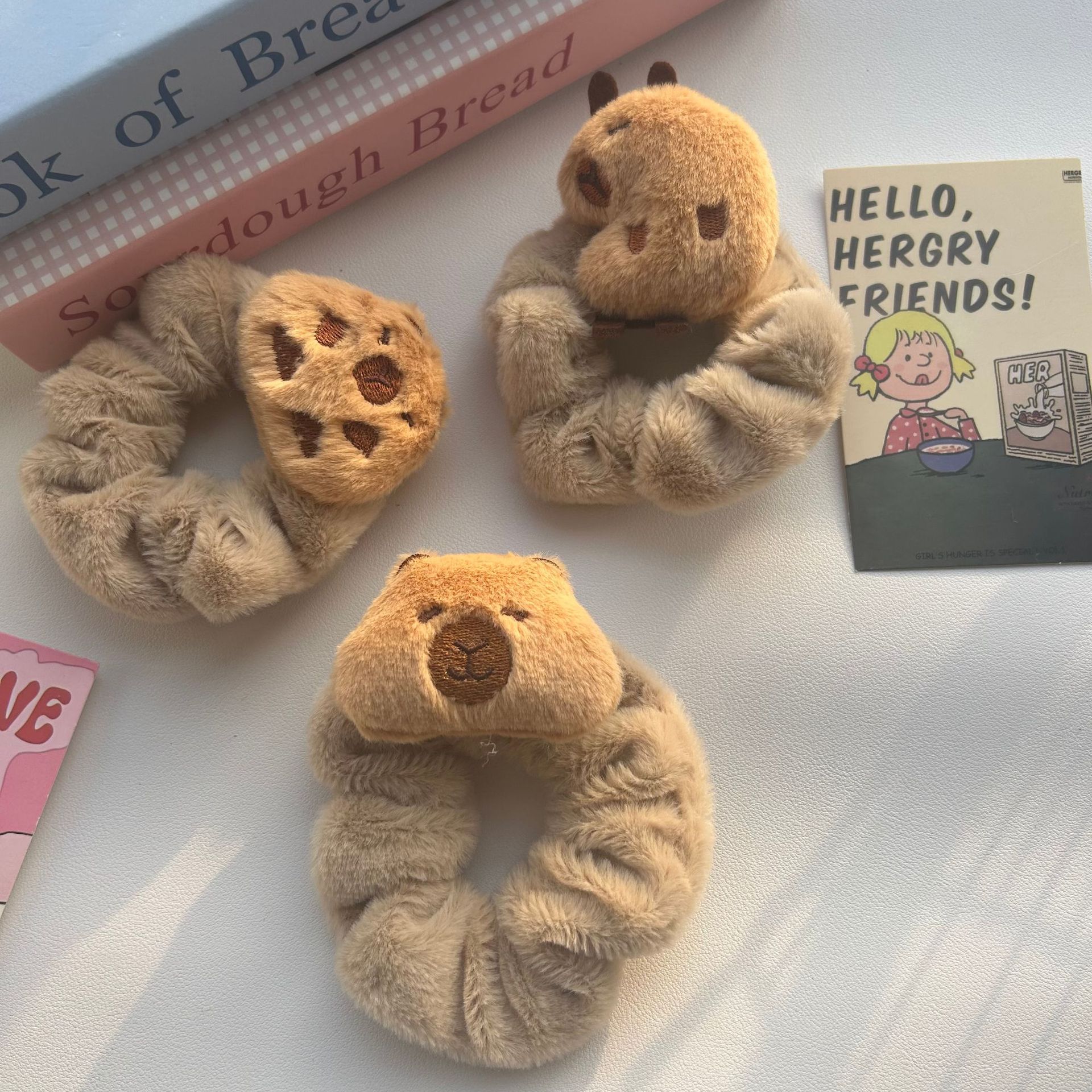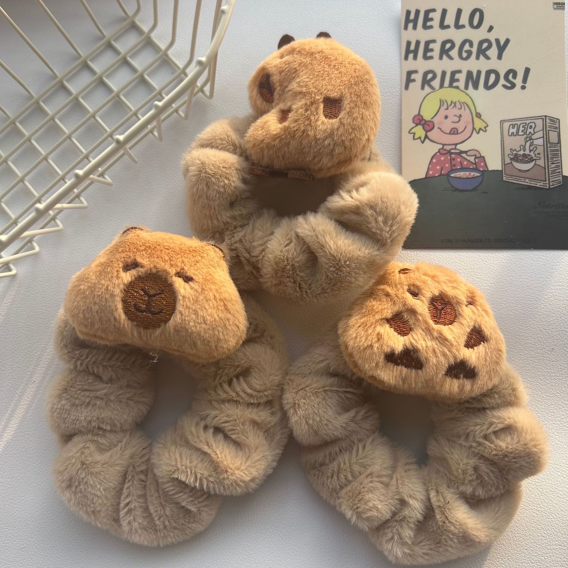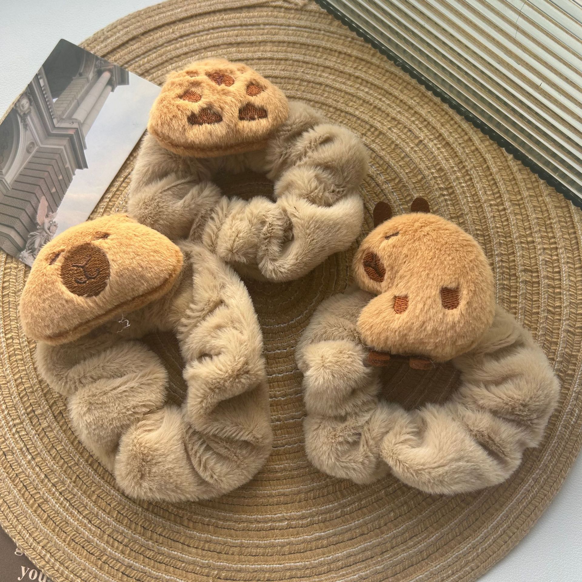 Otoño y invierno Capibara pelúcia anillo de cabello nuevo Dolphin encantador cuerdas de cabello suaves color curry anillo de intestino grande