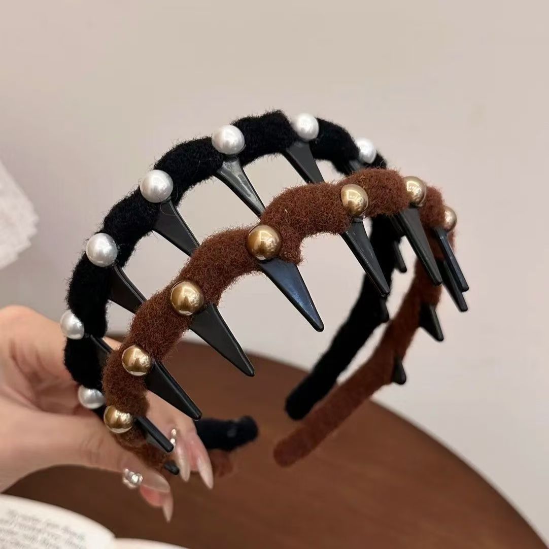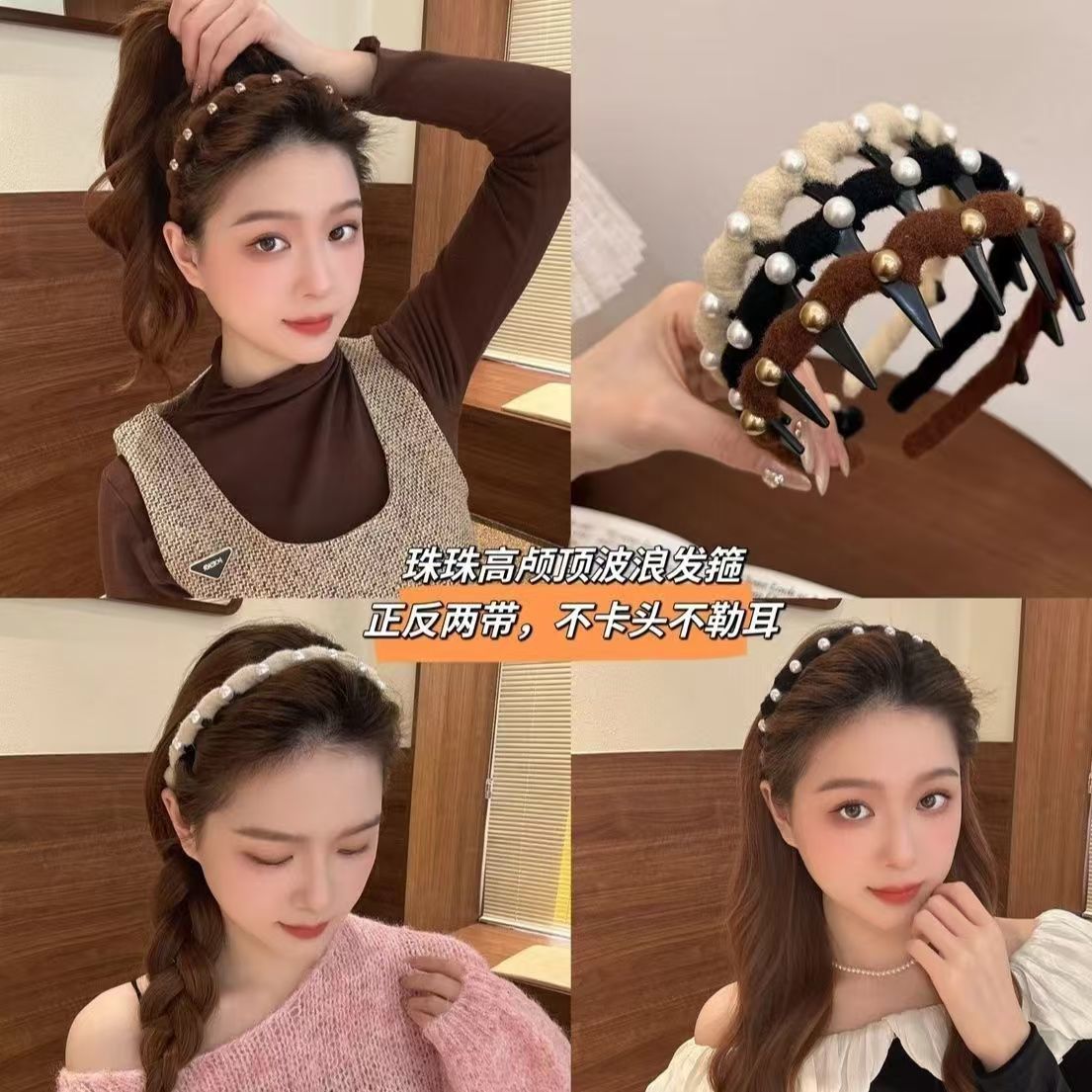 Perlas ondas de cabello para mujeres 2024 nuevo alto cráneo de correa de dientes antideslizante presión clip de cabello acabado artefacto paquete de cabello