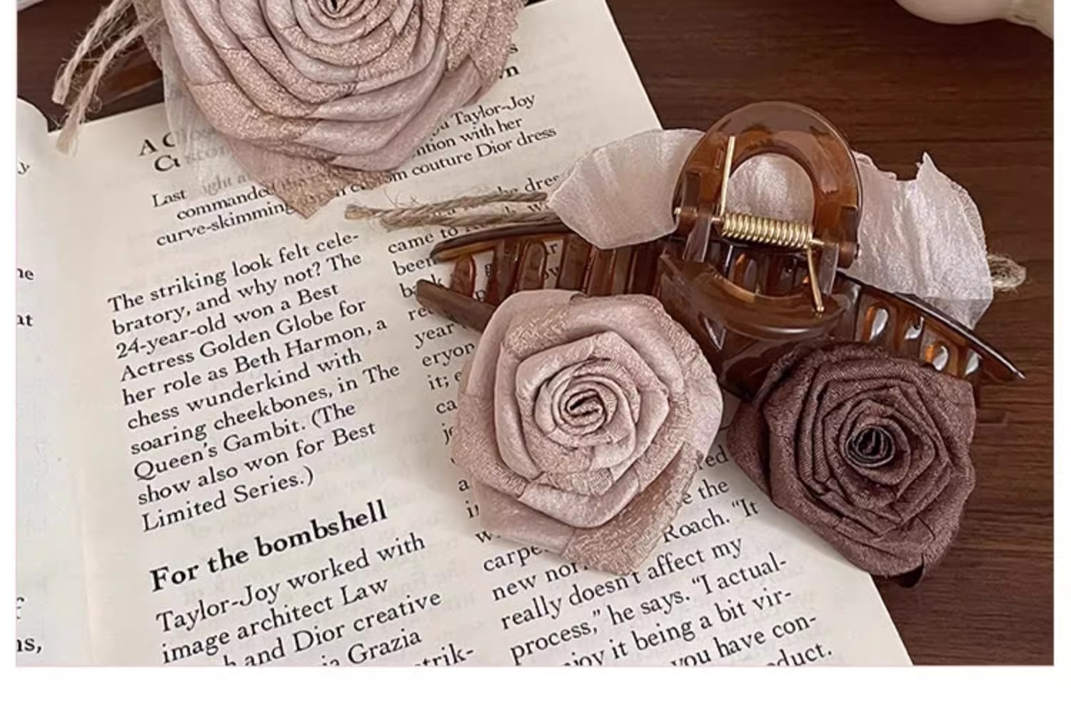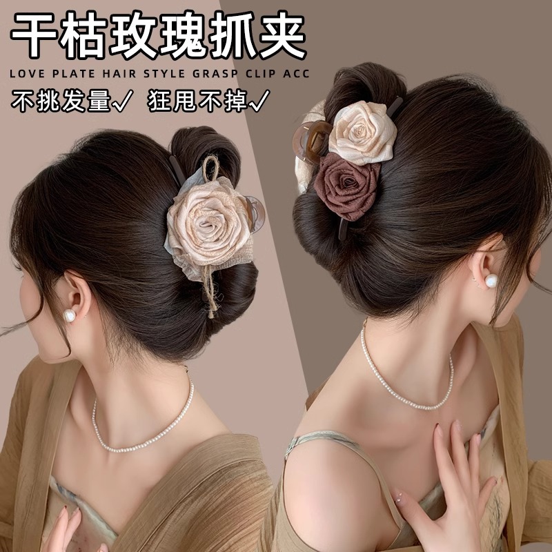 Clip de cabello grande rosa seca flores antiguo clip de cabello de otoño y invierno después del cerebro de la mujer clip de pescado pinza de cabello
