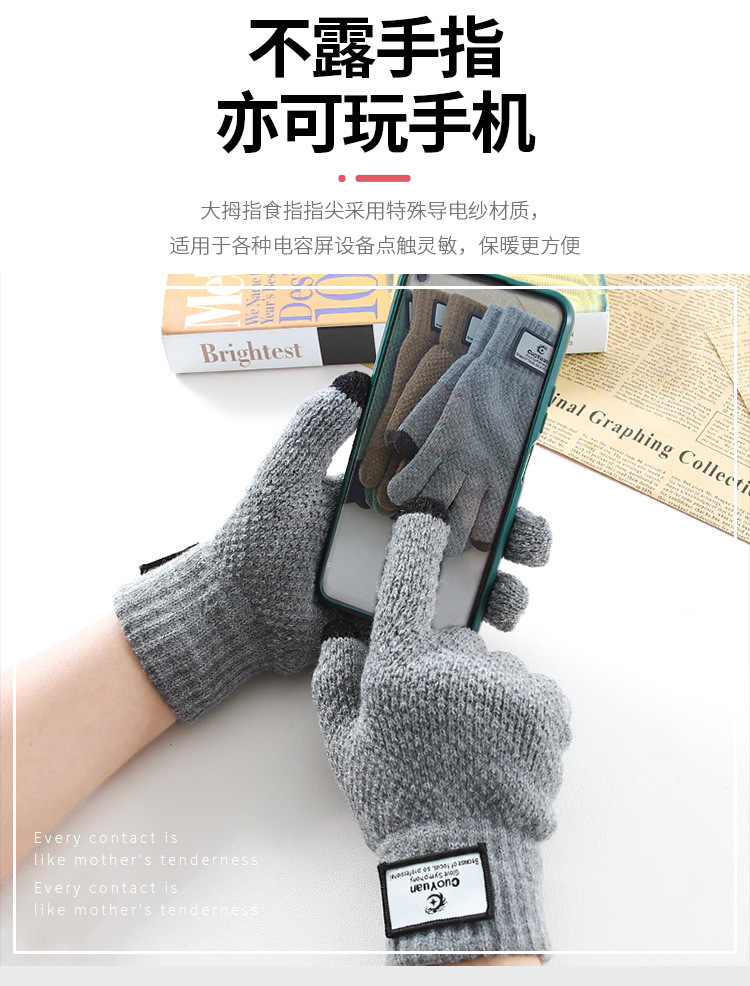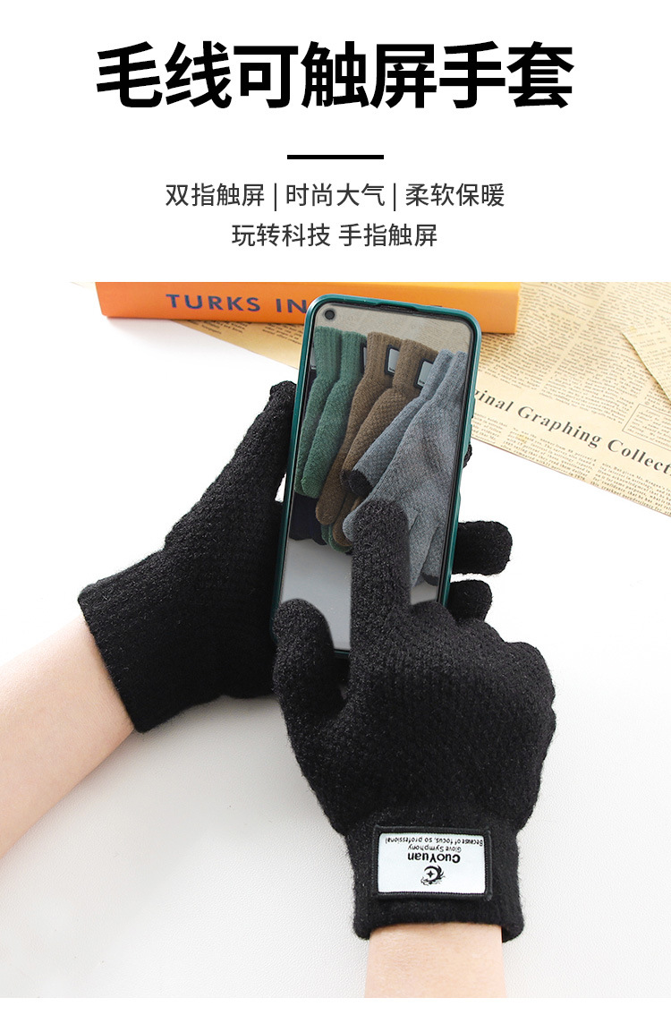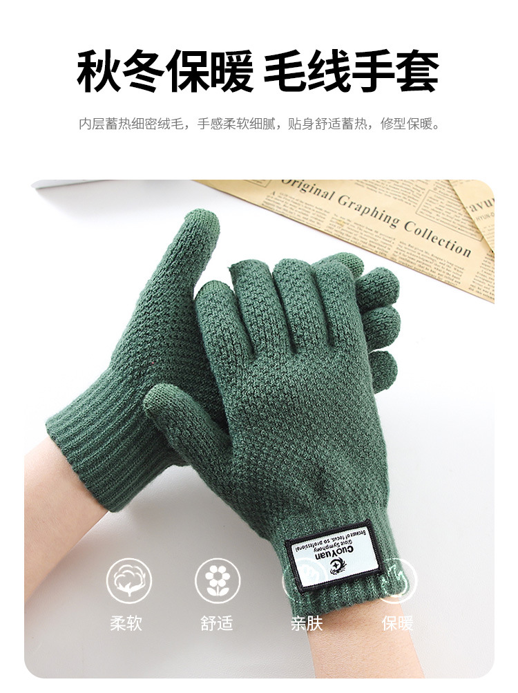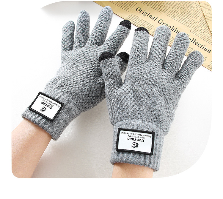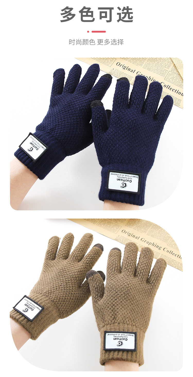 Otoño y invierno ciclismo mujeres y hombres más vello grueso calentamiento frío a prueba de viento pantalla táctil guantes de lana de punto al por mayor