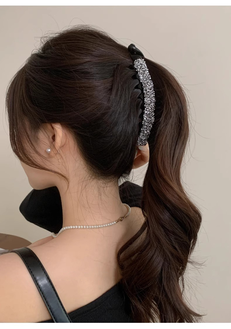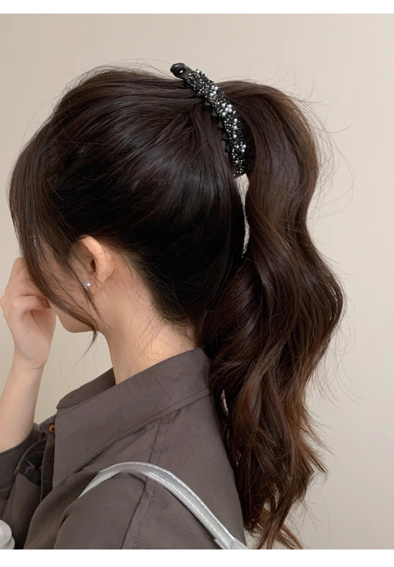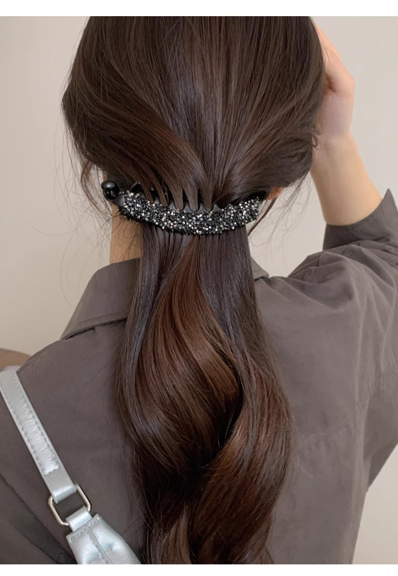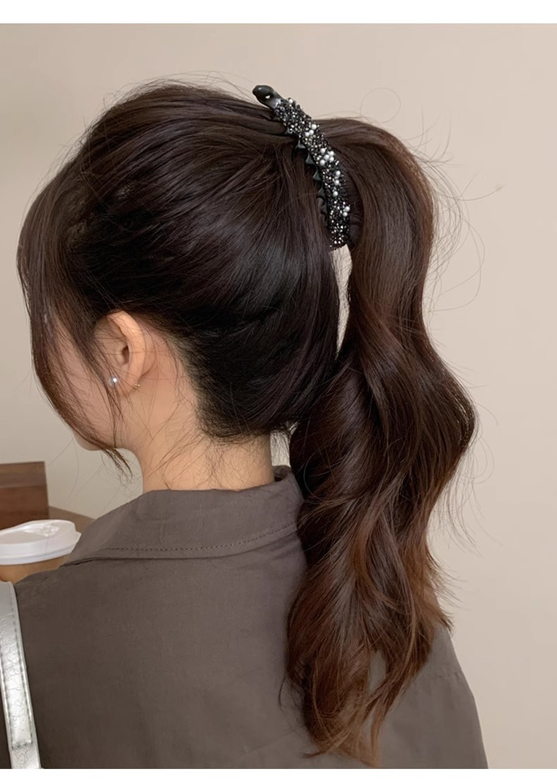 Coreana de diamantes de brillo de banano, cola de caballo fija, cabello fijo, cabello suelto, broca de cabello, cabeza trasera, toque de cabello