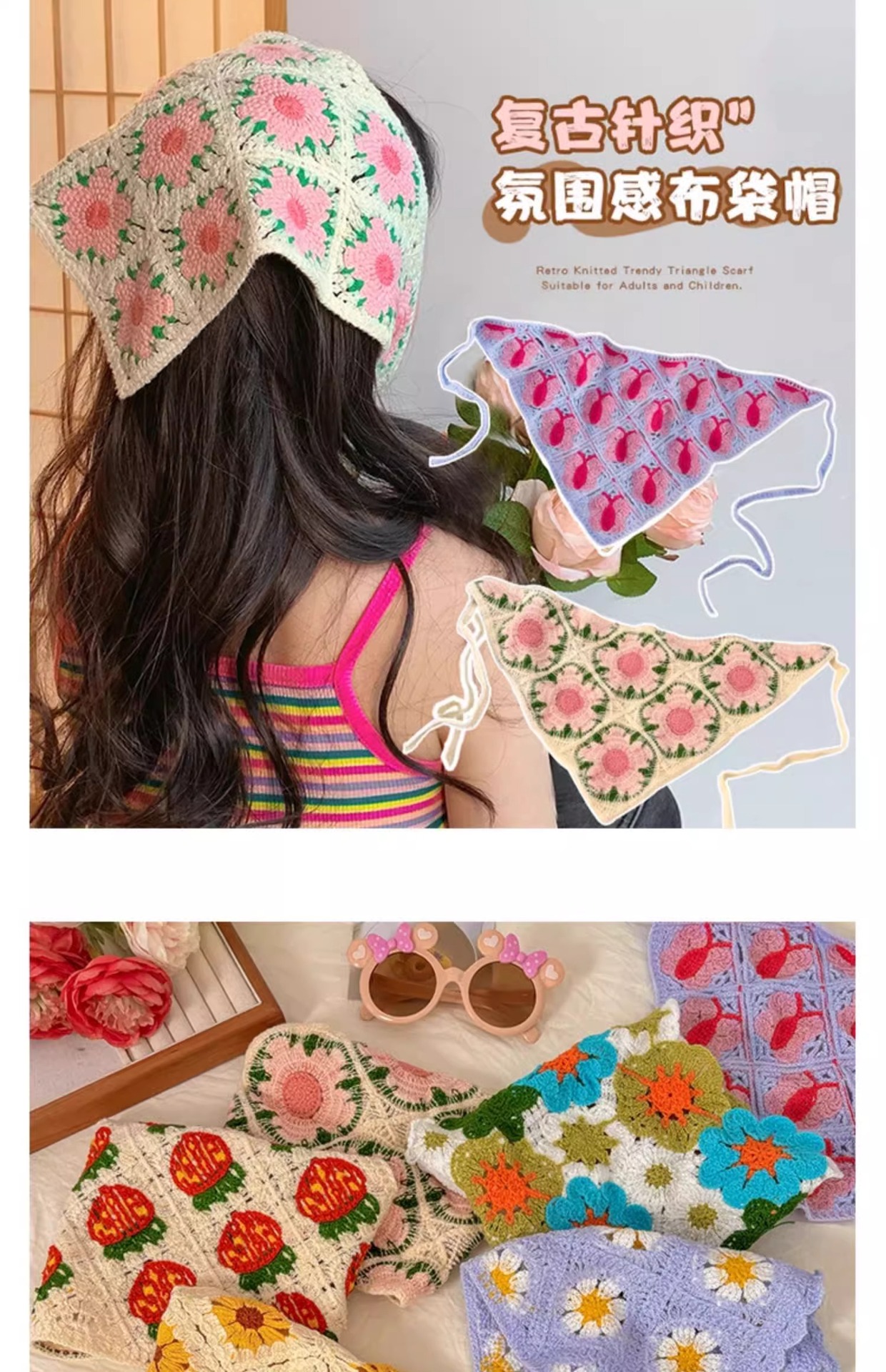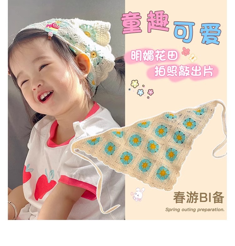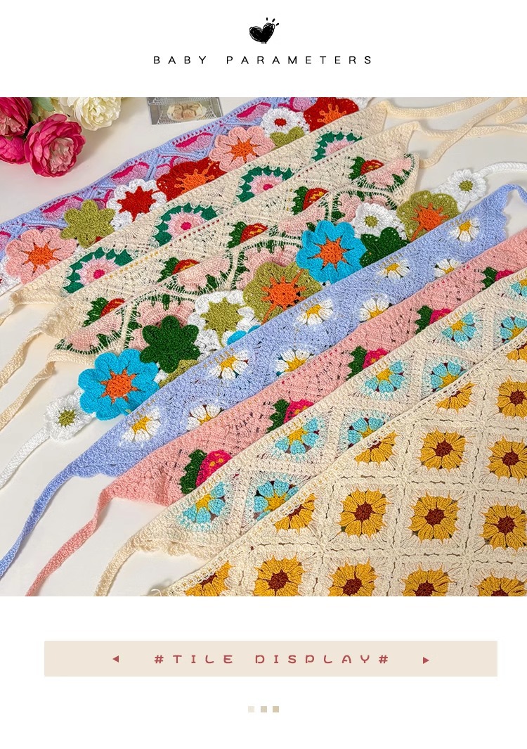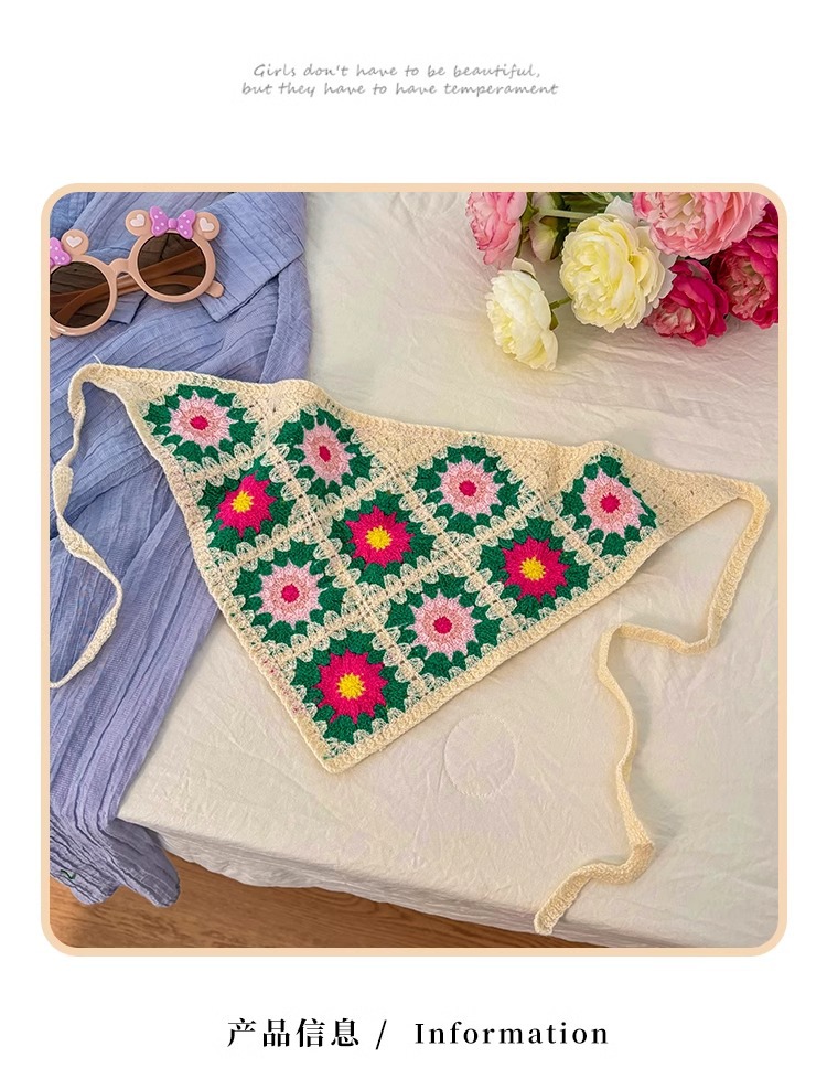 Bandera de cabello turbante en una toalla triangular cubierta de toalla cuadrada sombrero estilo pastoral ornamentación de cabello de playa de mujer correa de cabello de encaje toque