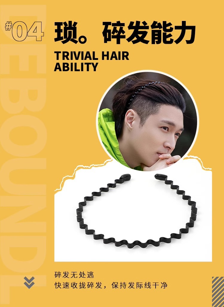 Men simple lavar la cara correa de pelo de verano clip de pelo deportivo ondas invisibles cabello de cabello no sujetar el cabello correa de cabello negro