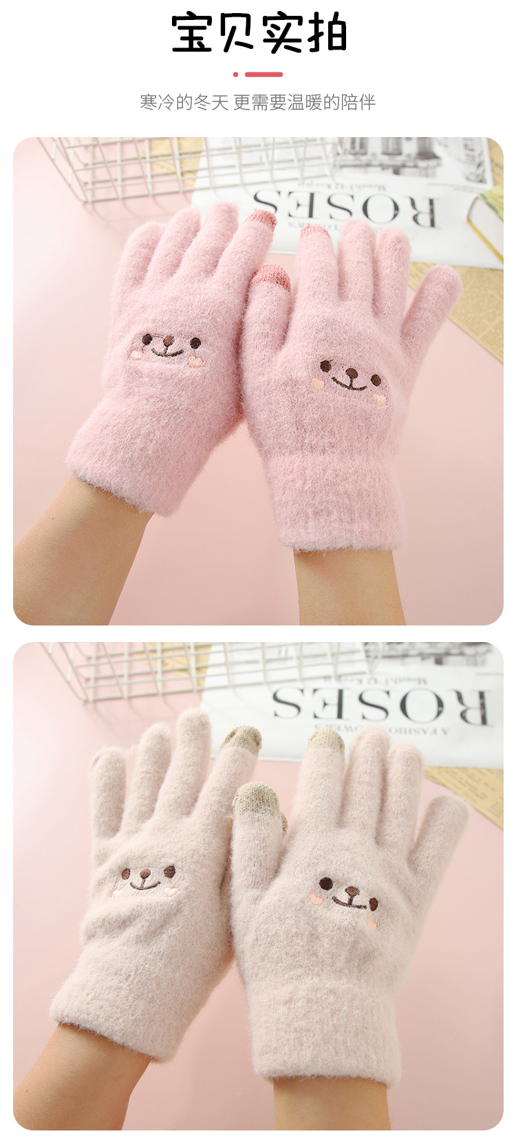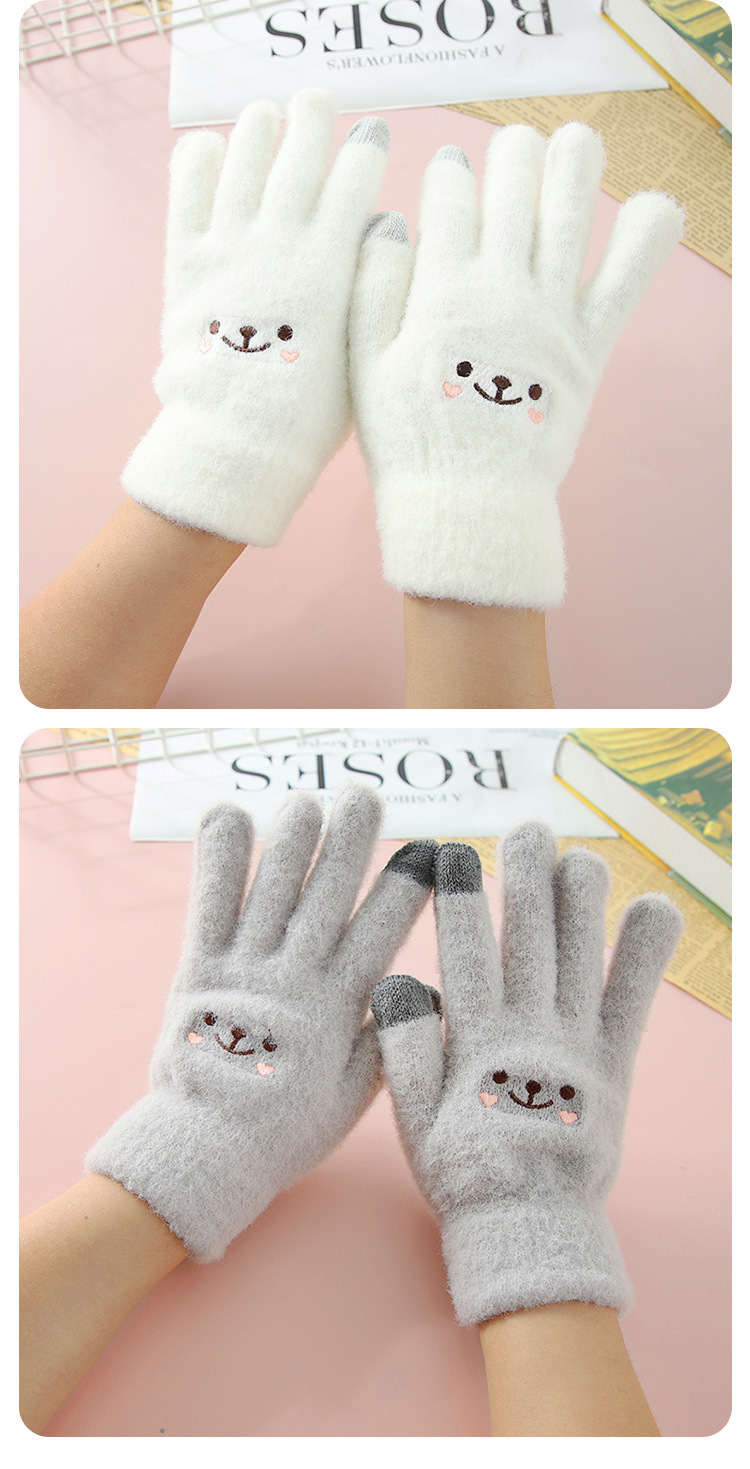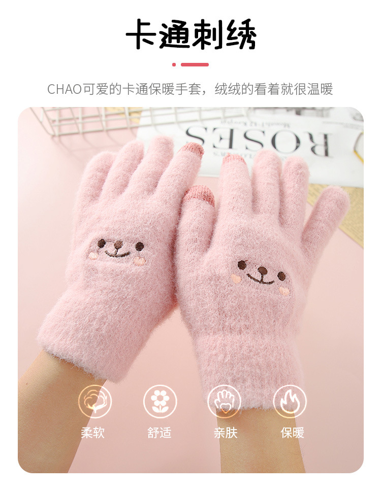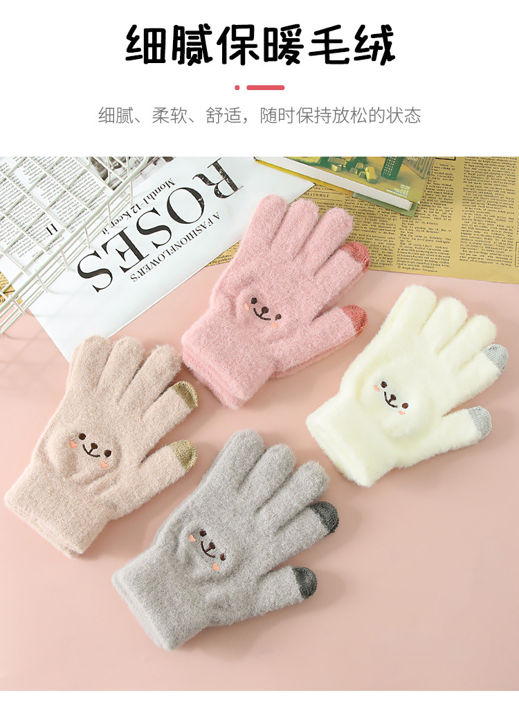 Versión coreana de dibujos animados sonriente invierno frío y cálido más terciopelo engrosado estudiante al aire libre chica dulce y lindo guante de pantalla táctil