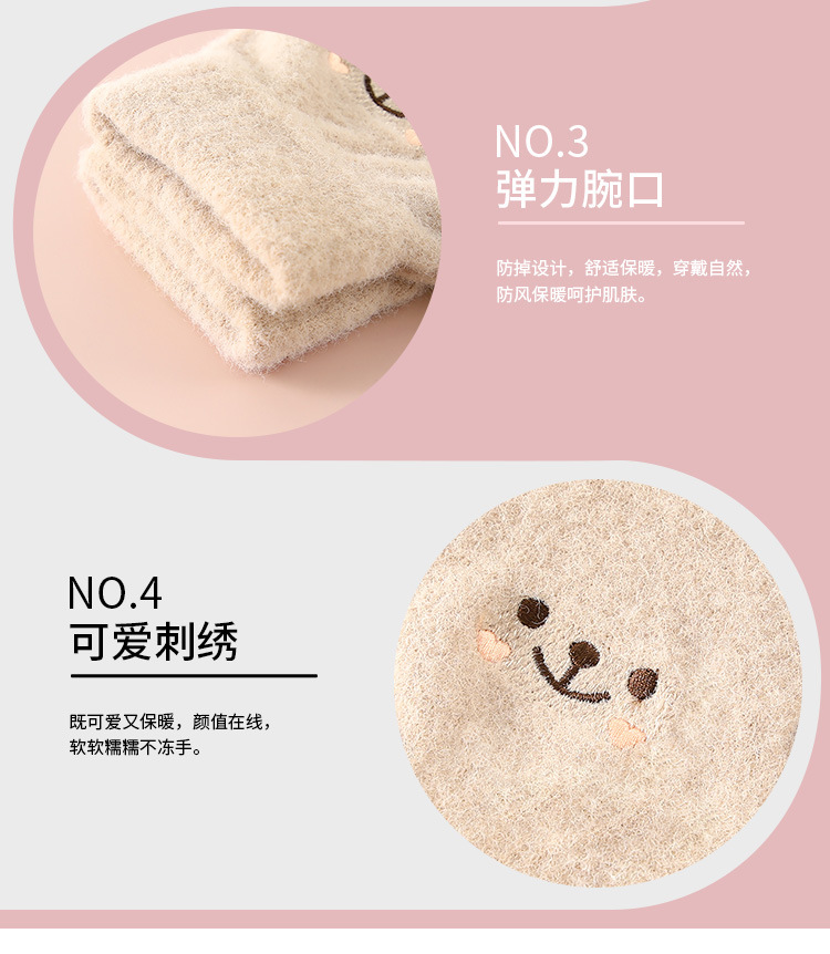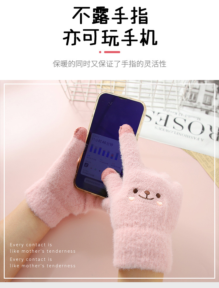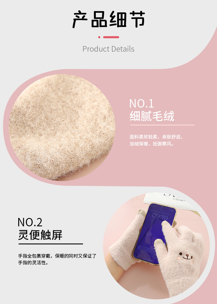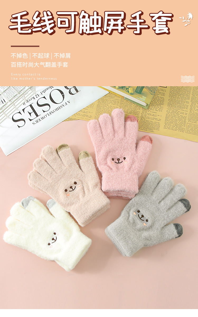 Versión coreana de dibujos animados sonriente invierno frío y cálido más terciopelo engrosado estudiante al aire libre chica dulce y lindo guante de pantalla táctil
