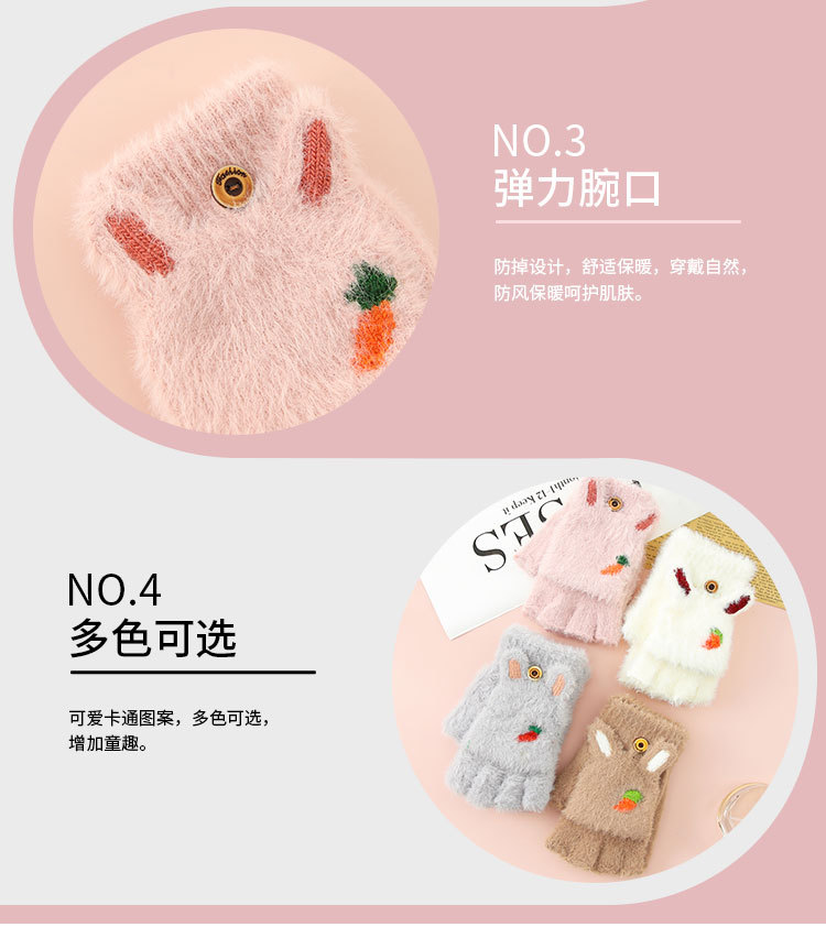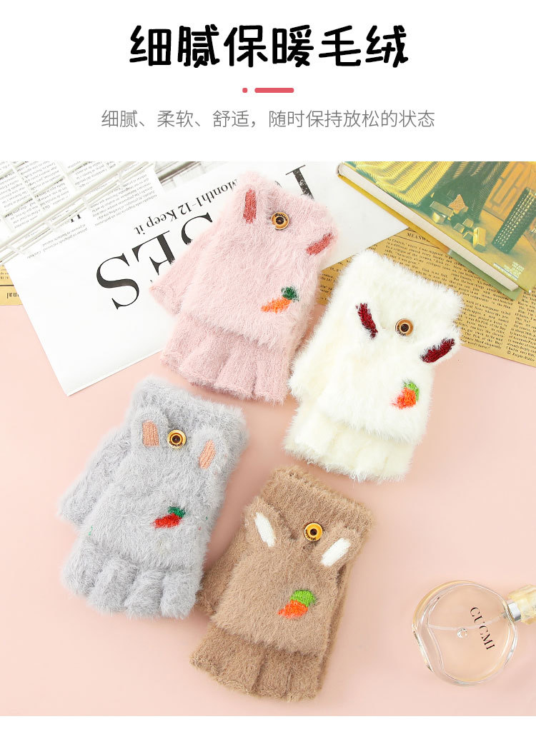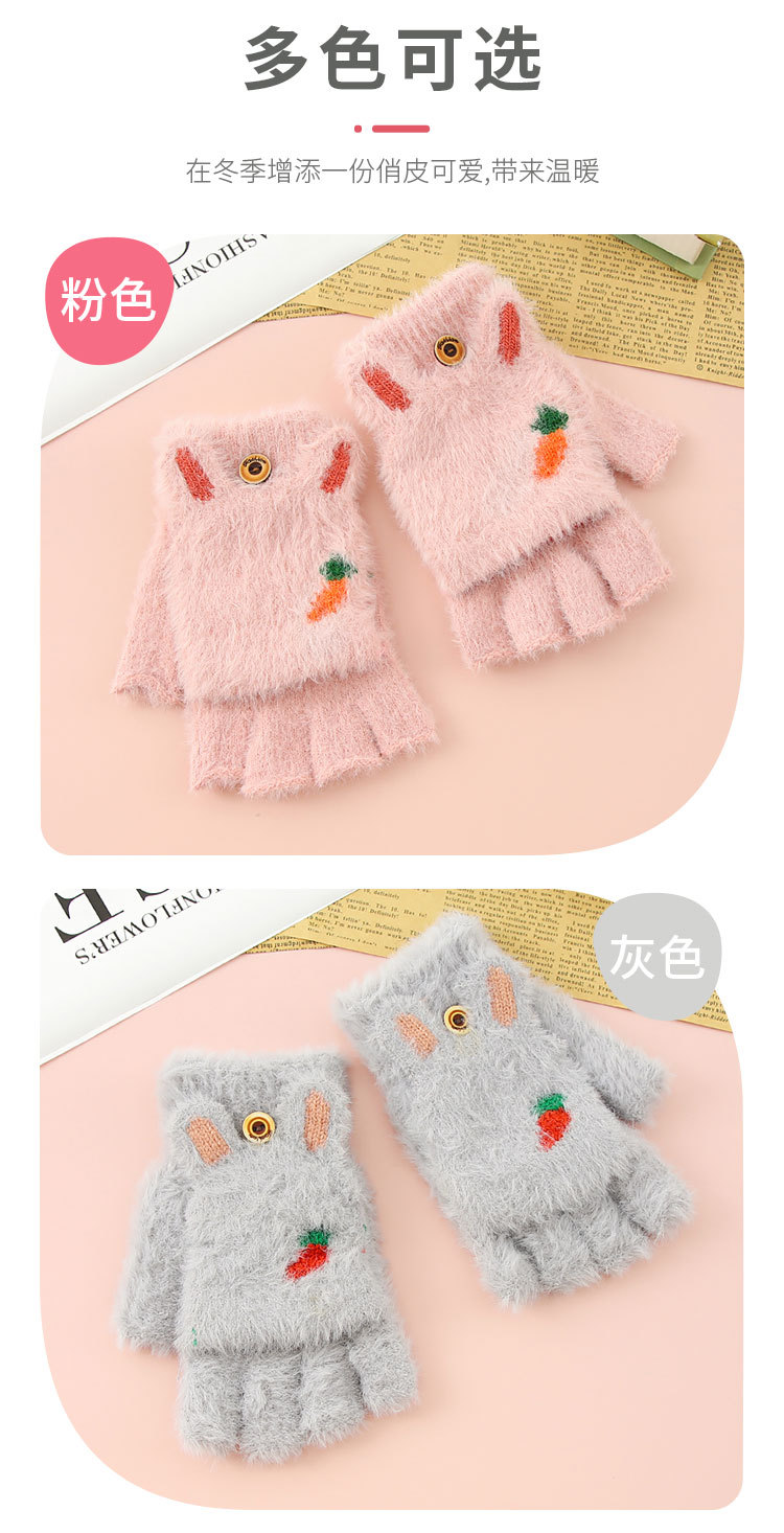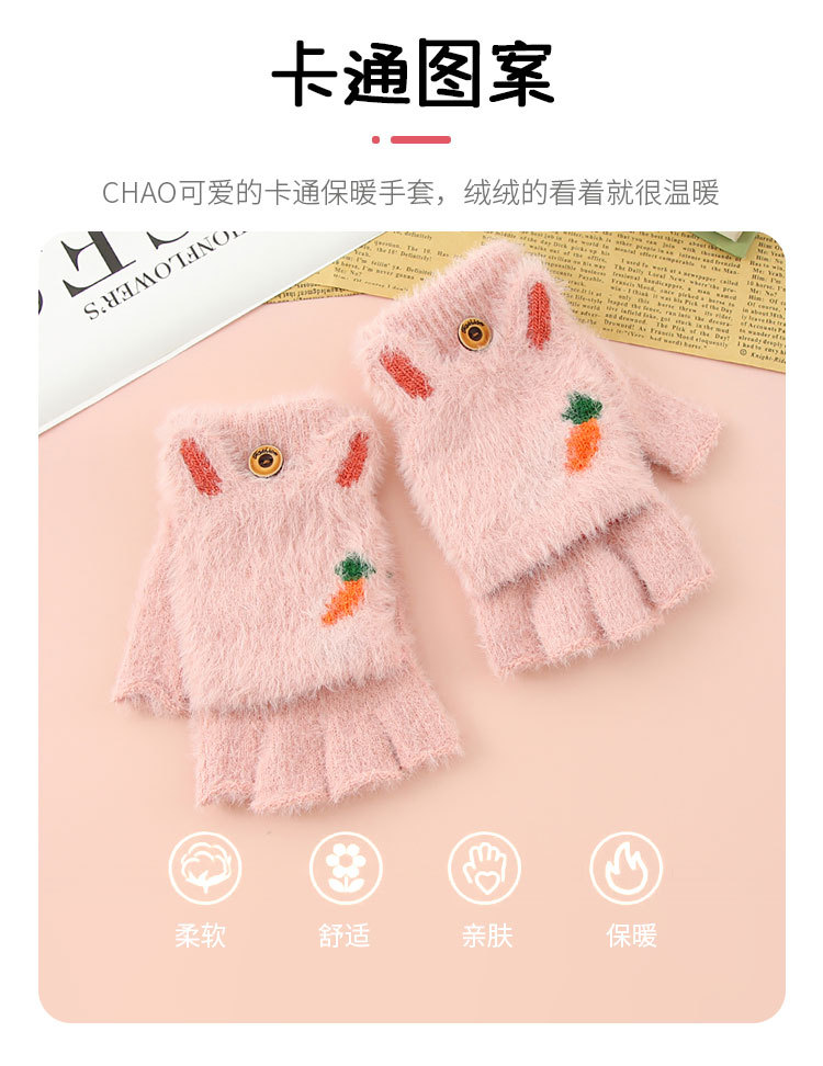 Otoño y invierno estudiantes niños mitad de dedo flap flap cartoon rábano peluche más peluche grueso guantes de calor al por mayor