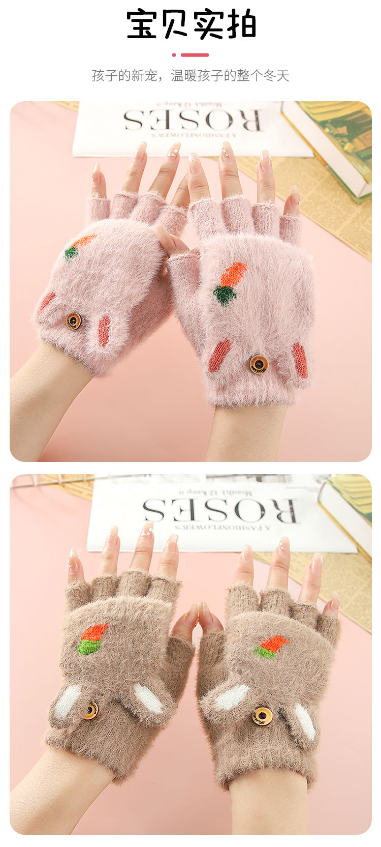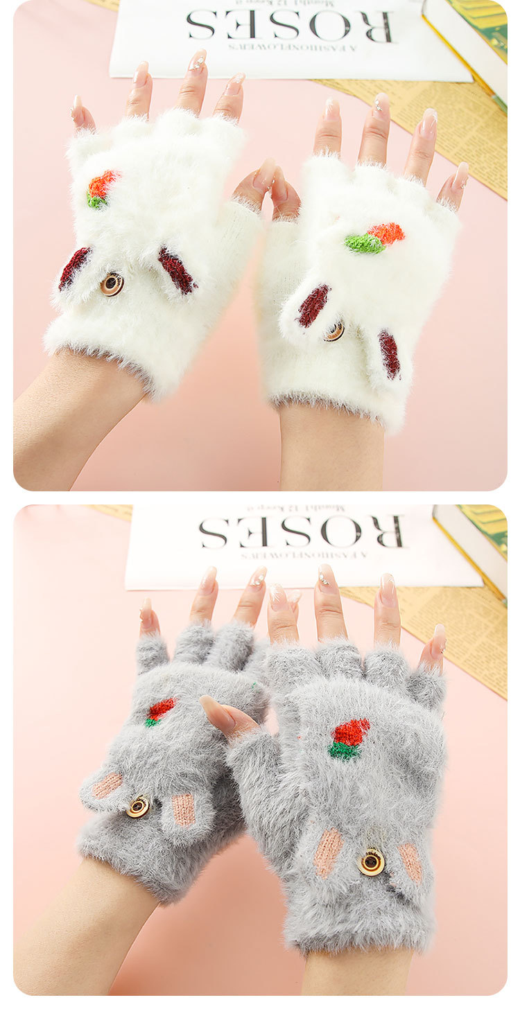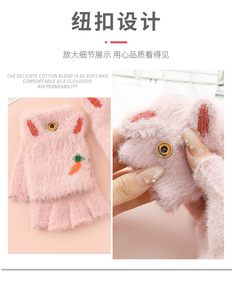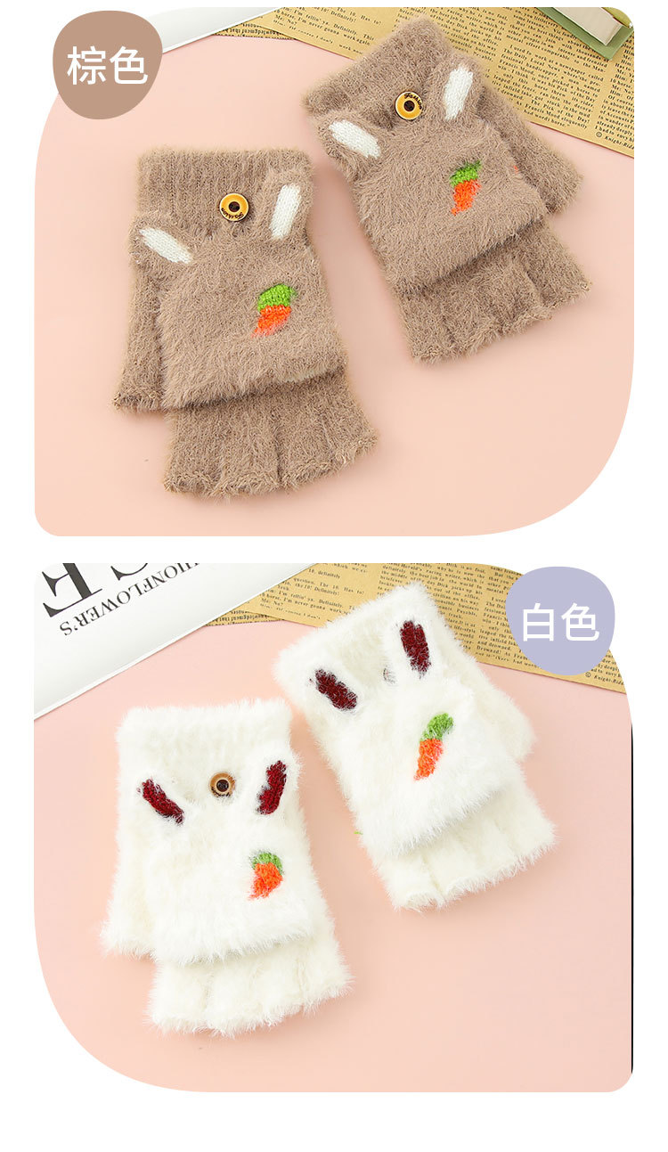 Otoño y invierno estudiantes niños mitad de dedo flap flap cartoon rábano peluche más peluche grueso guantes de calor al por mayor