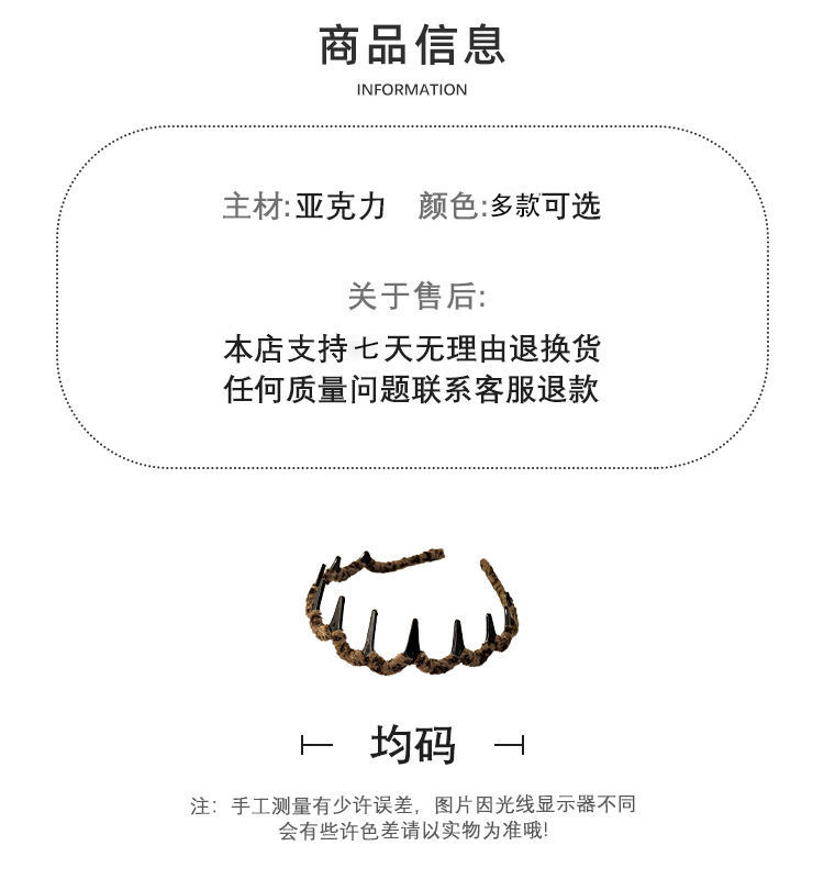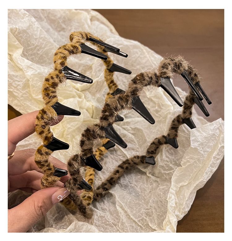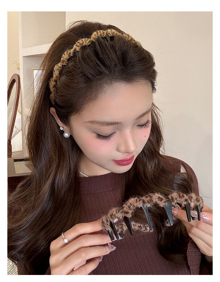 Coreano alto cráneo debe aumentar la altura esponjoso peludo ondulado banda de cabello de doble uso con dientes para mujeres
