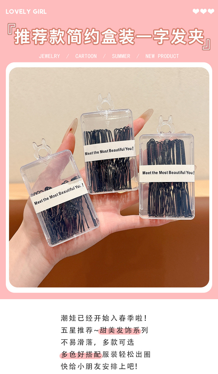 Simple caja negra una abrazadera de acero abrazadera de cabeza de bola de mujer cabello fijo en forma de U clip de cabello cabeza de abrazadera de pestaña invisible