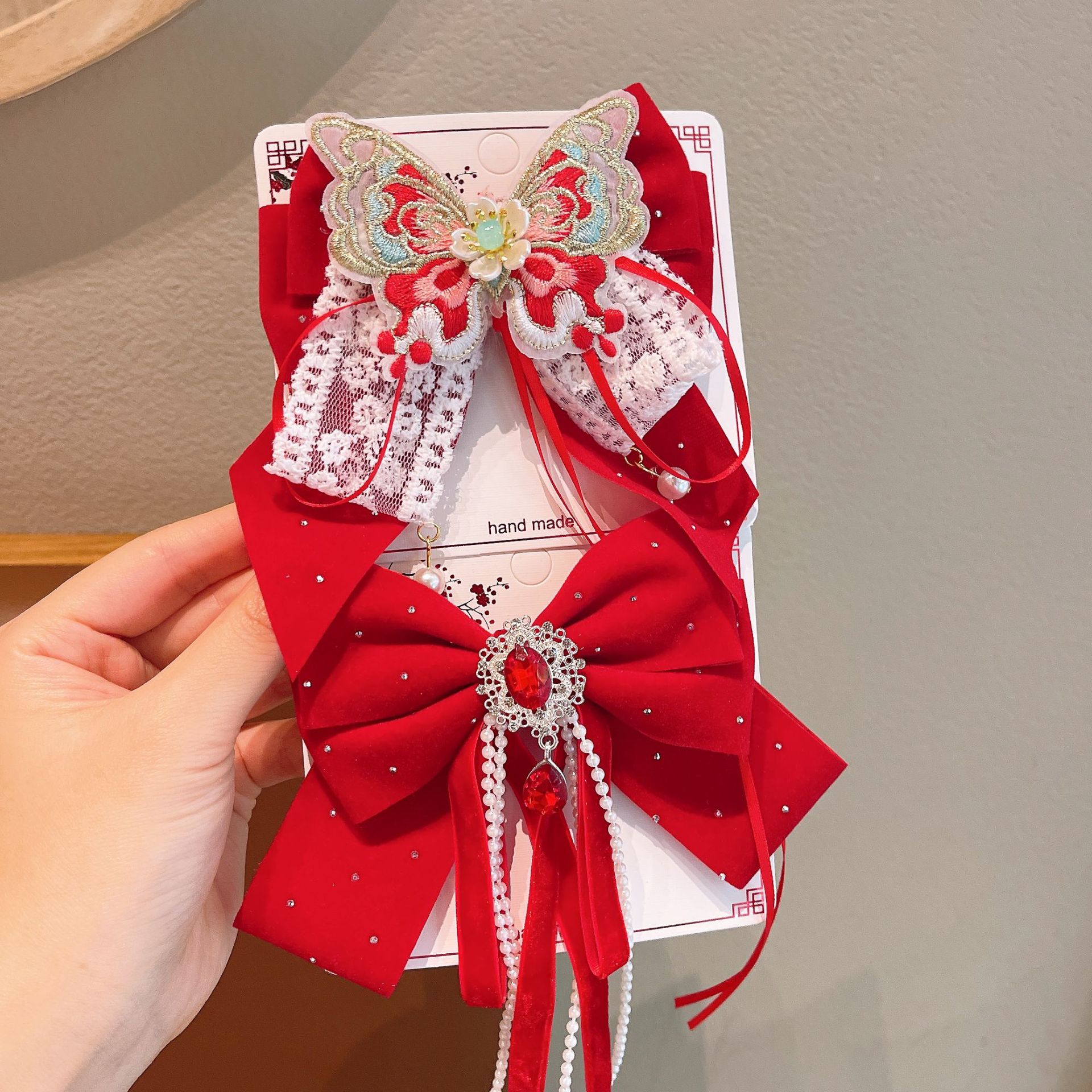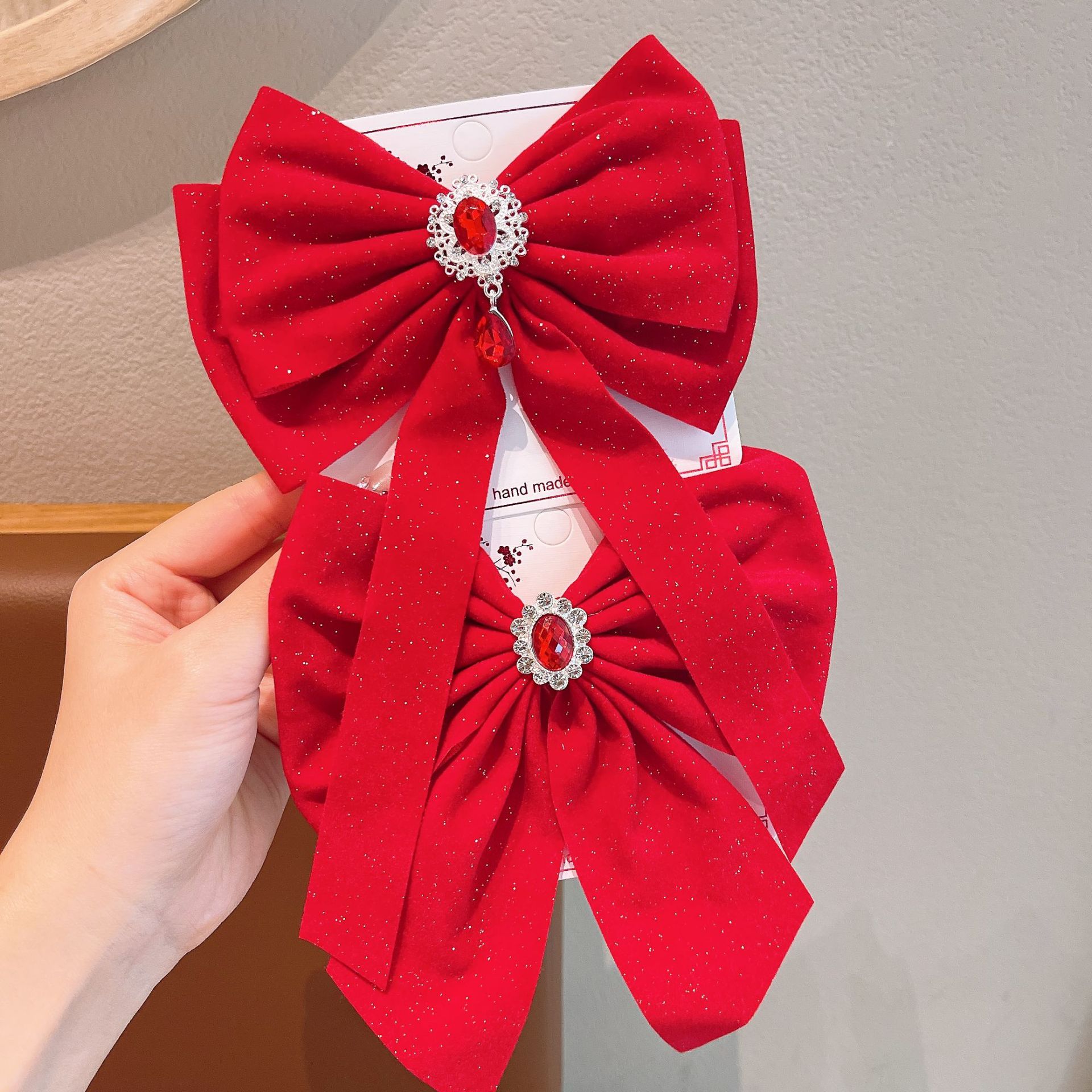 Nuevo estilo coreano para niños arco de Año Nuevo rojo niñas uniformes de Año Nuevo rojo esquinilla clips top clips de cadena clips de pelo