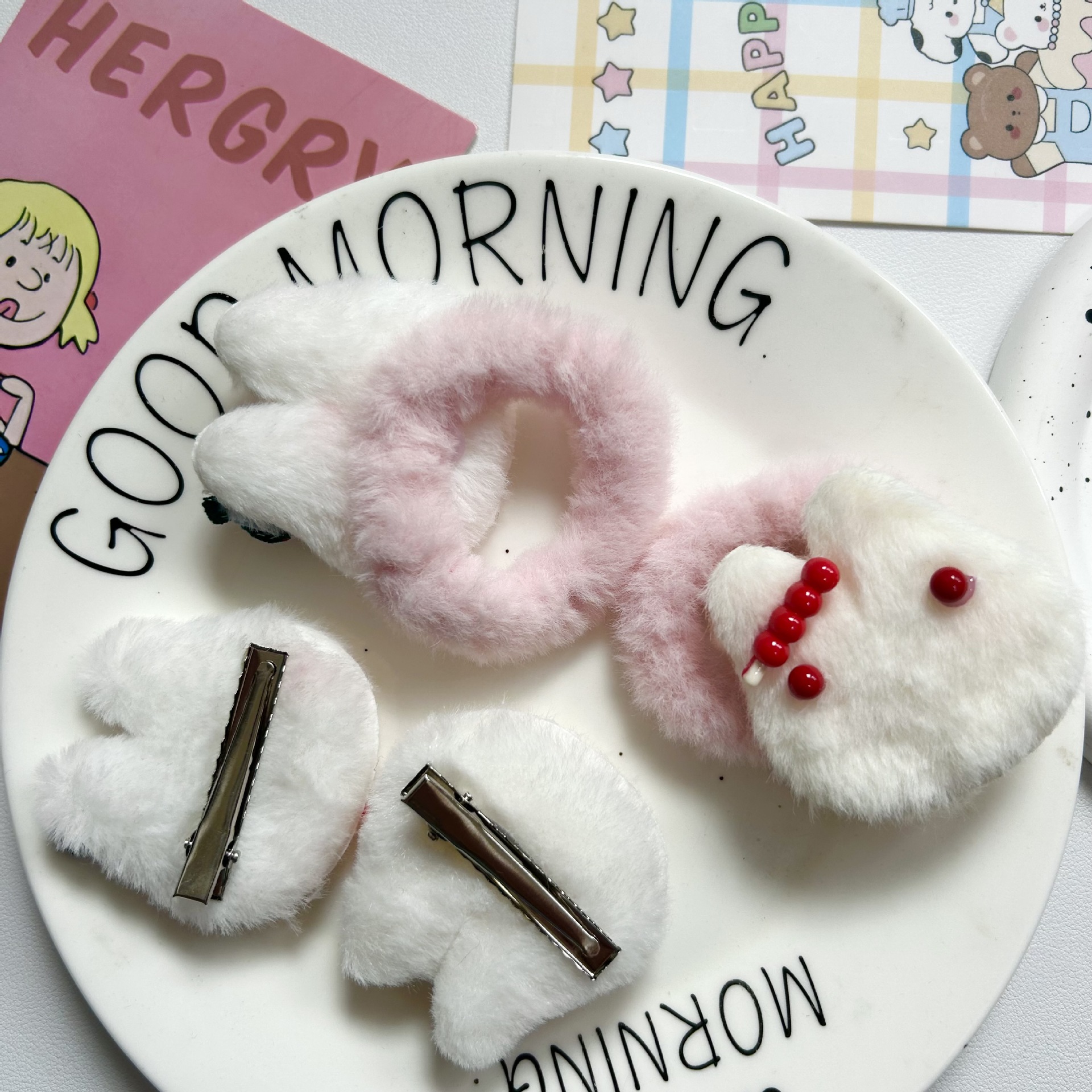 Otoño y invierno nuevo peludo conejo clip de cabello cuerda de cabello adorable clip de dibujos animados para niños regalo de clase adornamiento para el cabello