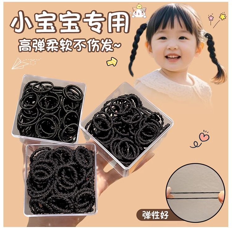 Niños pulgar negro anillo de pelo correa de goma de alta elasticidad bebé atado corda de pelo de correa de pelo de niñas no lastimar adornos de pelo de cabello
