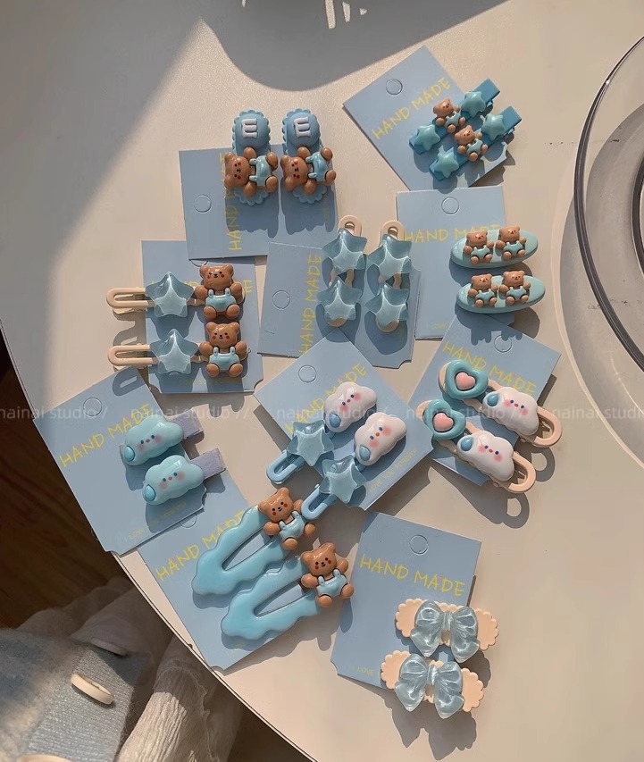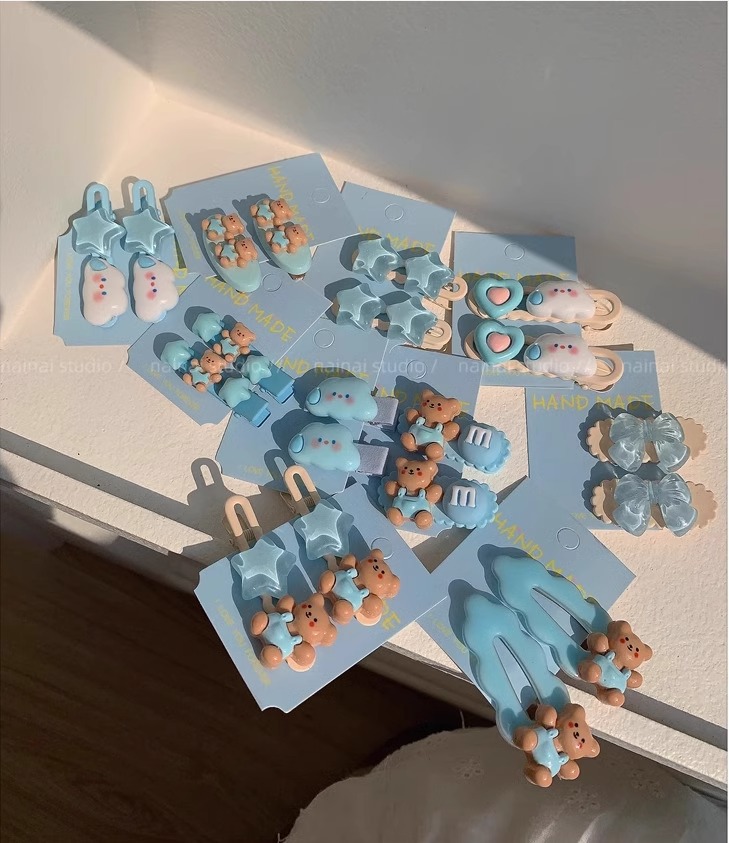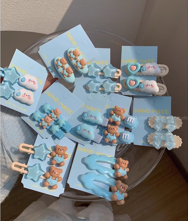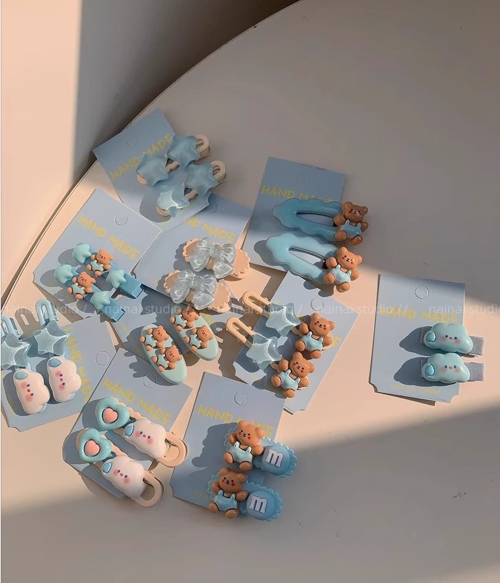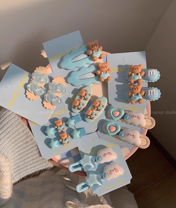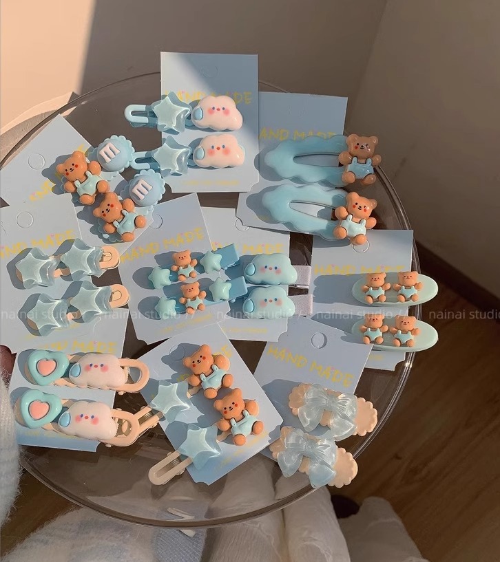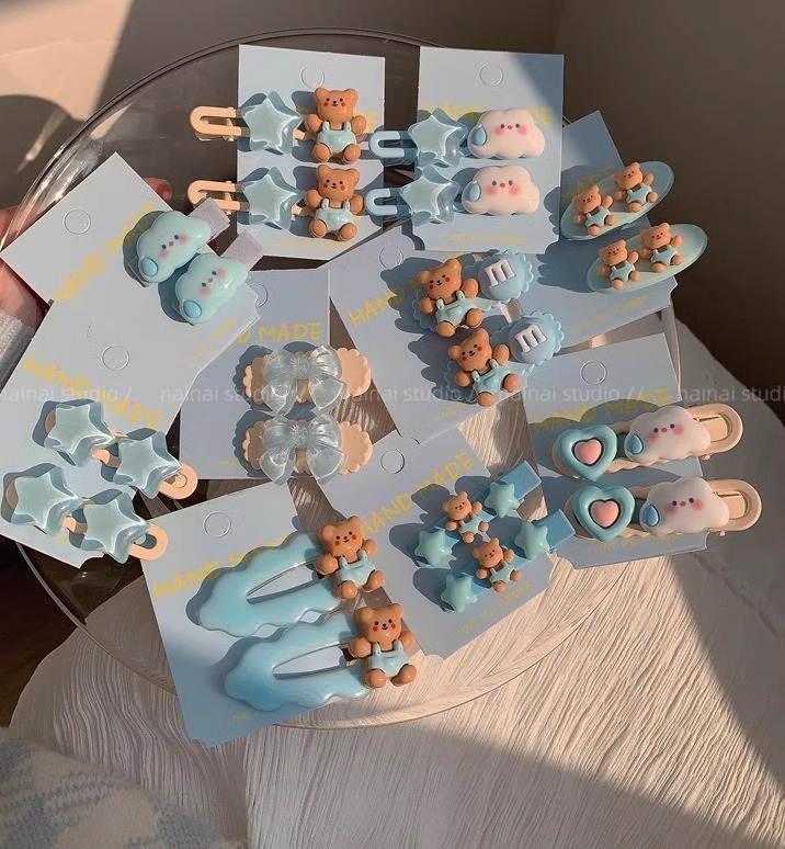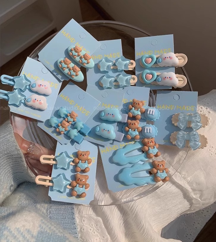 ¡El oso azul ama el clip de pelo! Sweet girl cloud bow clip BB lateral clip clip de pelo de pato mar