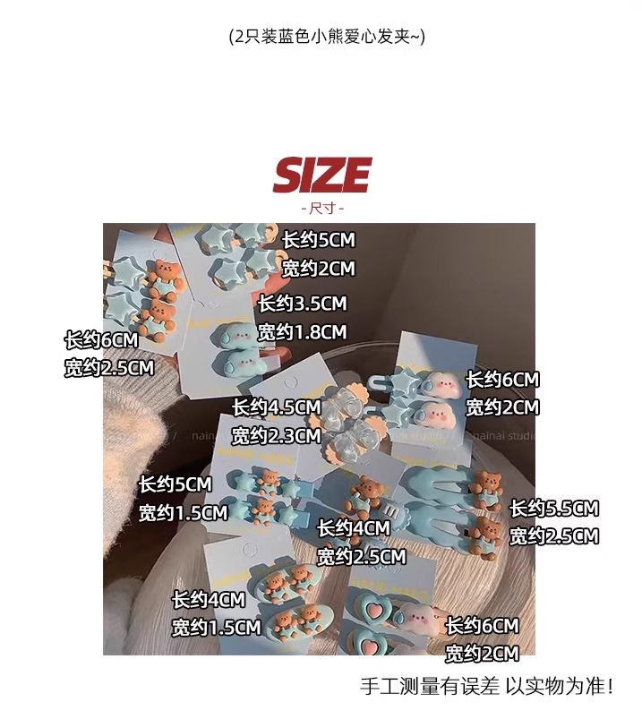 | Color | 2 # Clip de agarre de nubes - Single, 3 # nubes azules de estrellas - Single, 4 # Doble nube de arroz de arroz - Single., 5 # tres pinzas de penta-single, 6 # nubes azules estrellas bucles de cabello de cable telefónico - Single., 9 # Blue Pentagram BB Clip - Bolsa OPP única. 10 # Cloud BB Clip - Bolsa OPP única. 13 # azul amor perro clip de boca de pato, 14 # Blue Puppy Pink Little Love Duck Mouth Clip. 1 # dos estrellas clip de pelo (single), 2 # 3 estrellas clip de cabello (single), 1 # conejo de gafas (single), 2 # Hat Bear (Single), 1 # nubes blancas pentagramas una palabra clips-lista, 1# Luna conejo estrellas broca de pelo de boca de pato - 5.8CM., 6 # Ratón de queso - 5.7CM., 7 # ratón de arroz - 5.7CM., 8 # estrella rosa nebulosa clip de boca de pato, 6 # rosa tres estrellas clip de boca de pato. 5 # nubes rosadas estrellas hueco clip de boca de pato. 4 # Doble nube rosa clip de boca de pato. 1# Piglet Pink (single), 15 # perlas de pentaca, 16 # pentagonal onda clips, 17 # Doble corazón de melón. |
