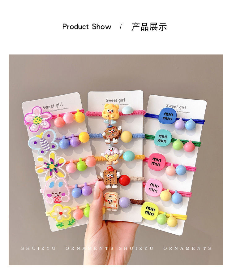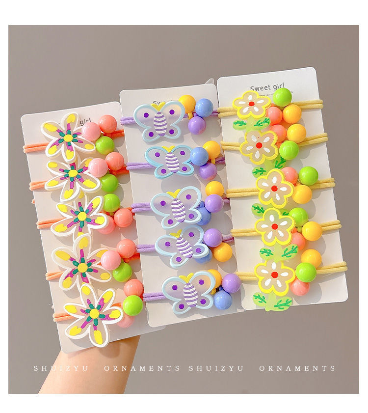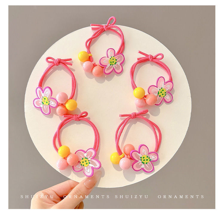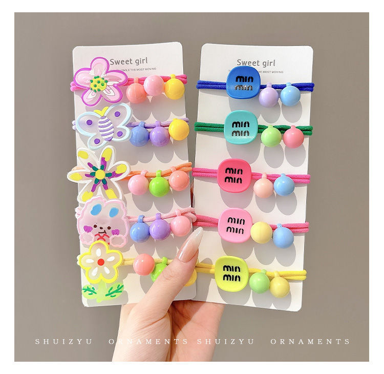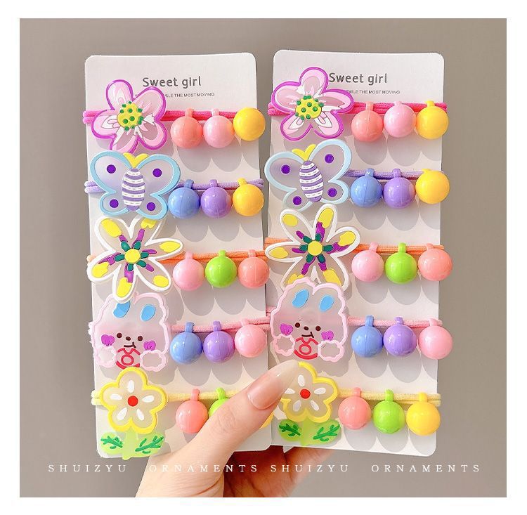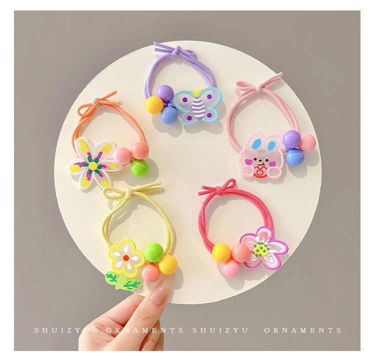 Color no daña cabello anillo de cabello niñas atadas bola cabeza elástica cuerda de cabeza lindo dibujo animado pequeño conejo flor cuerda de cabello