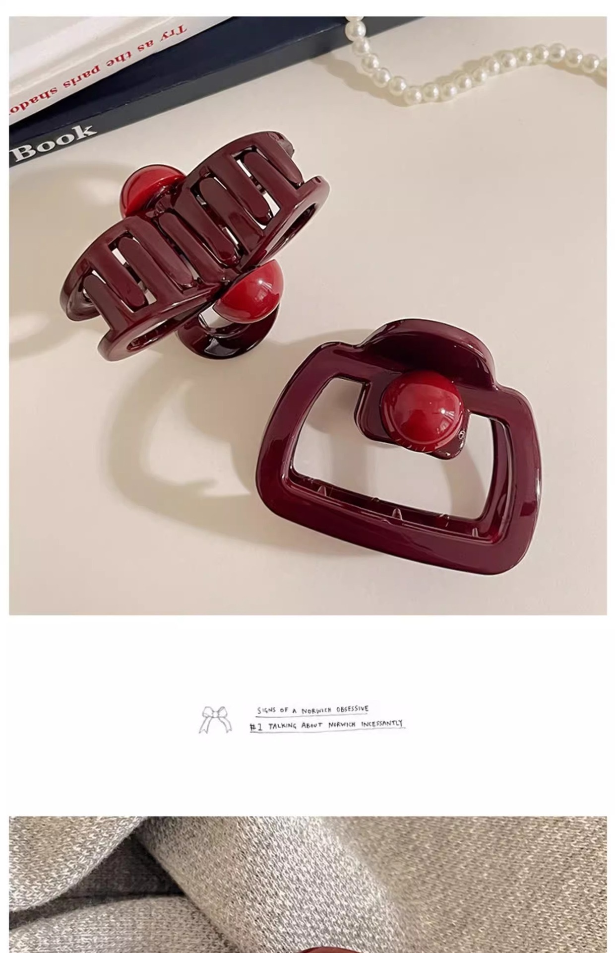 Anchor Red pequeño clip de cabello de arco agarrar clip de cabello de tiburón en la parte posterior de la cabeza femenina clip de cabello pequeño clip