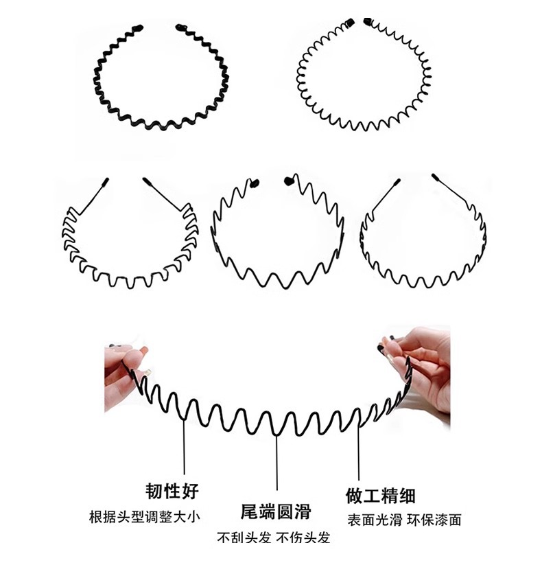 | Color | Aro de pelo ondulado de 6 mm, aro de pelo de montaña, aro de pelo de espalda grande clásico, aro de pelo de gancho interior, aro de pelo de remolino de temperamento, aro de pelo negro con dientes largos mate, aro de pelo espiral de pelo corto, doble ola simple, aro de pelo trenzado de cáñamo, aro de pelo cuadrado grande, aro de pelo de onda negra, base negra |