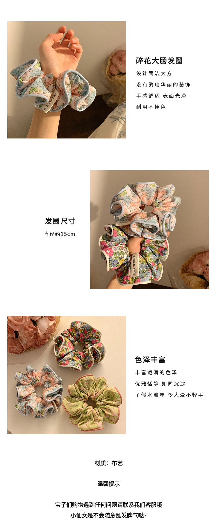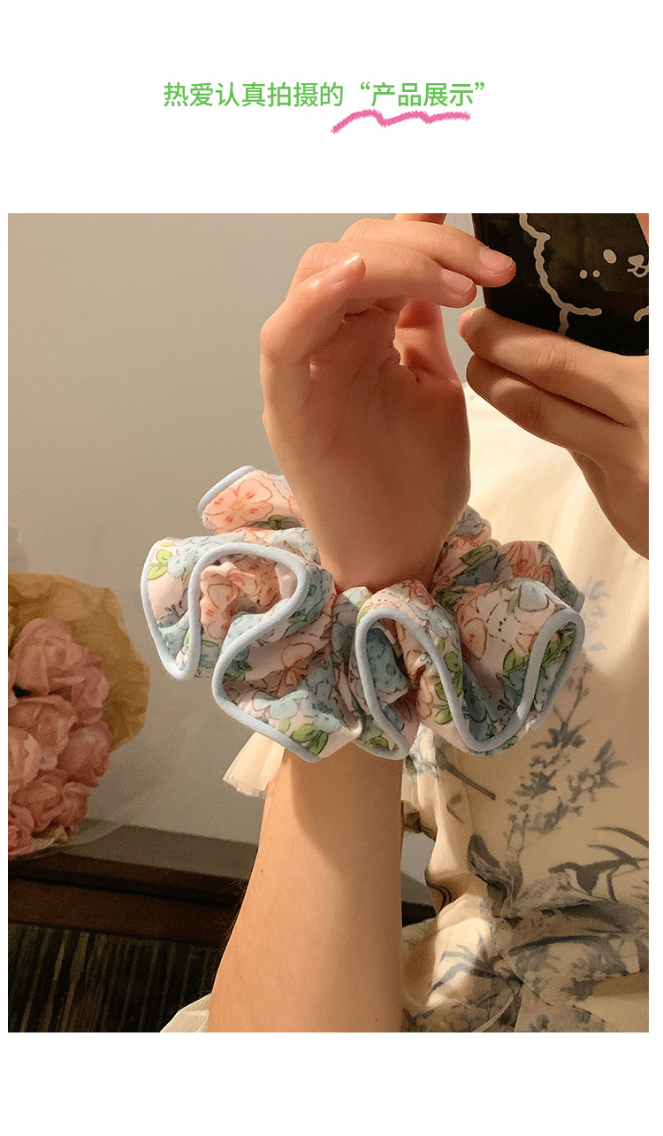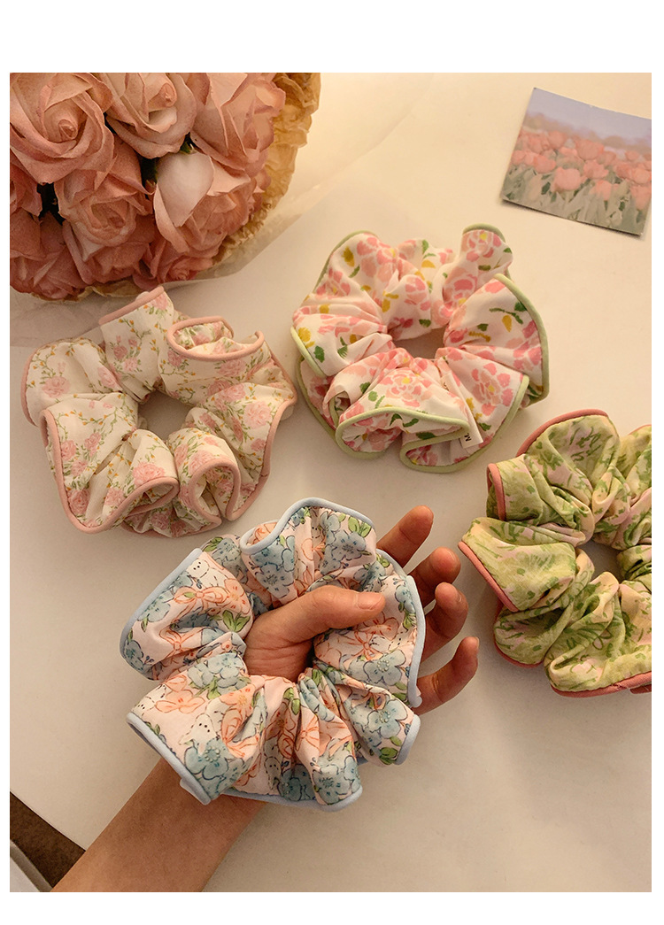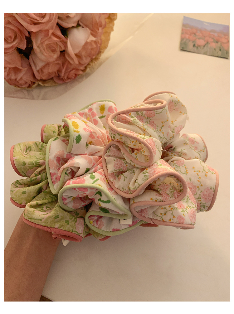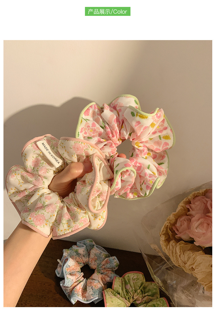 Flores rosa coreanas anillo de cabello de intestino grande para mujeres Sen Sen Sen Mei de alto nivel de sensación de cabello cuerda de cabello de gran tamaño de sensación de alto nivel adornamiento de cabello