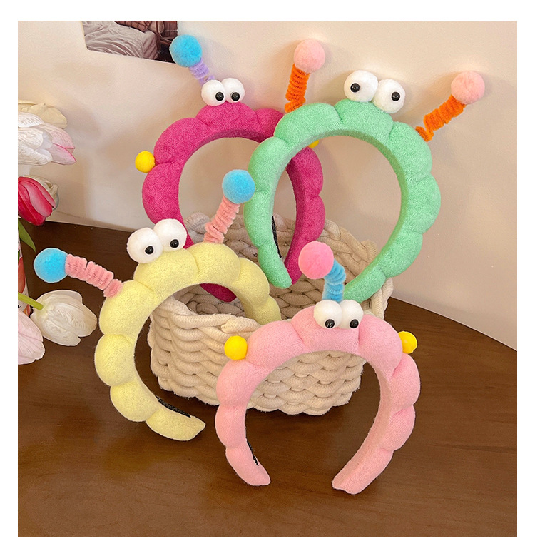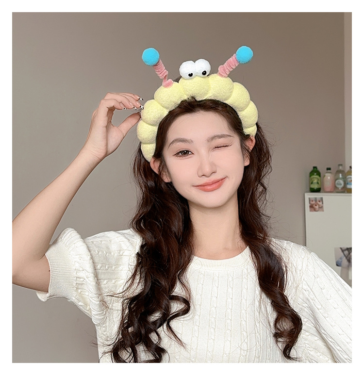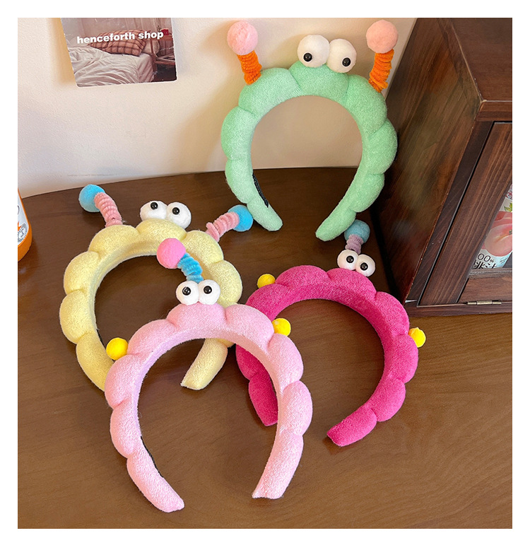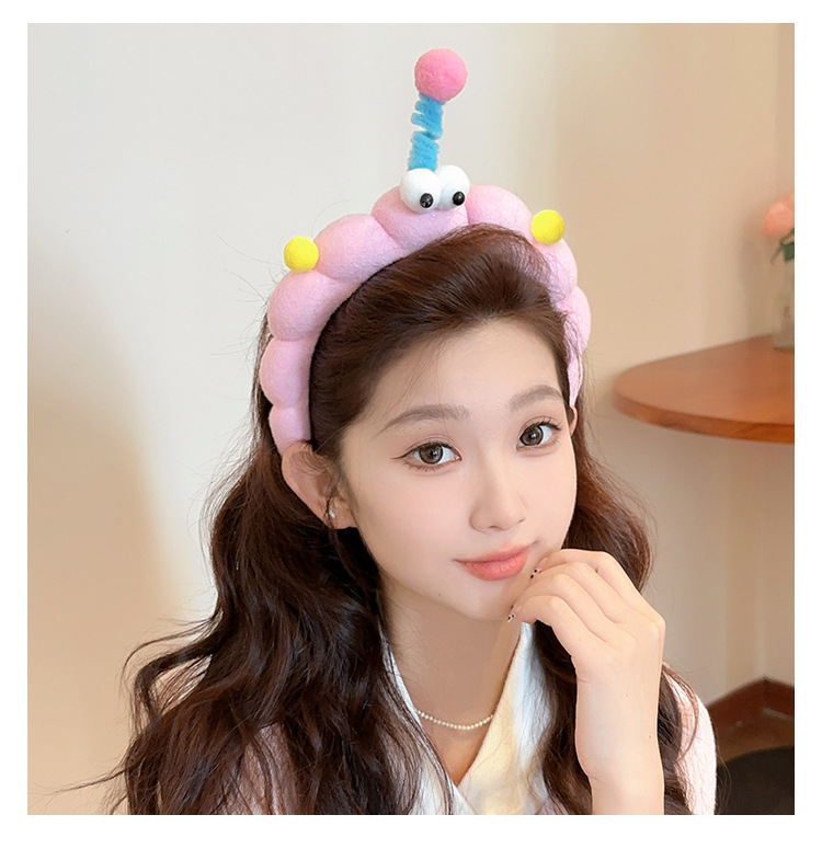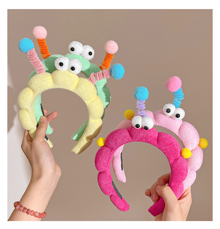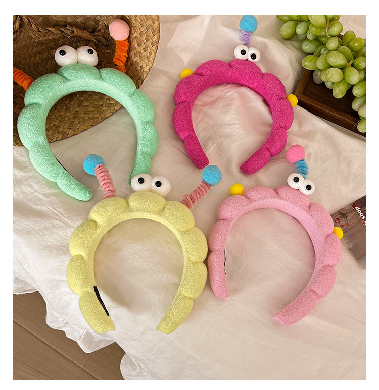 Divertido twist stick, ojos grandes esponja lavar la cara, banda de cabello en casa, sensación de niña lavar la cara, máscara, banda de cabello de presión, tarjeta de cabello