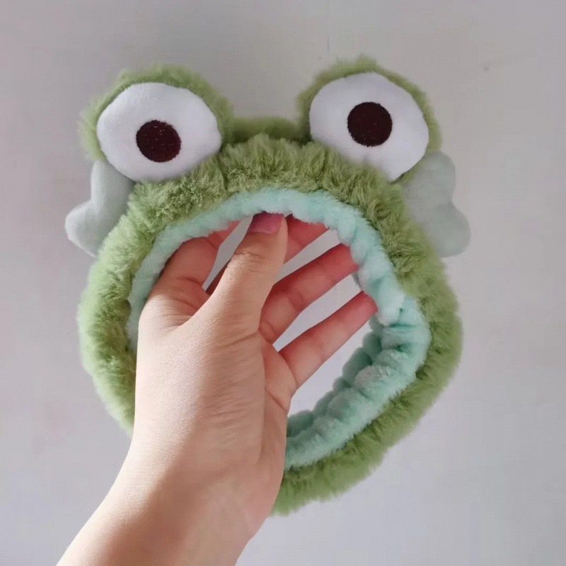 Otoño y invierno lindos bandas de cabello de ranas para mujeres máscaras faciales para lavar la cara dibujos animados de peluche bandejas de cabello extrañas tarjetas de cabello al por mayor