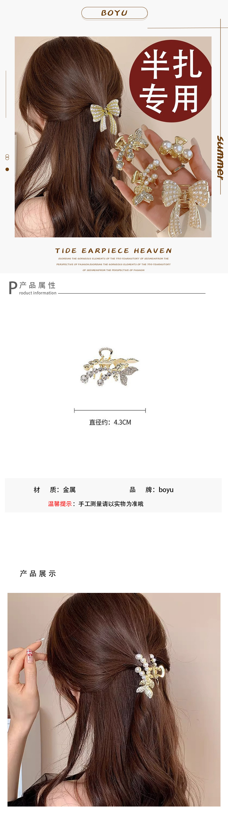 Pinza de metal, pequeña hembra, medio atado en el lado, pinza de pelo, temperamento, sentido de alto nivel, horquilla de nicho, pinza de pelo rota simple, accesorios para el cabello